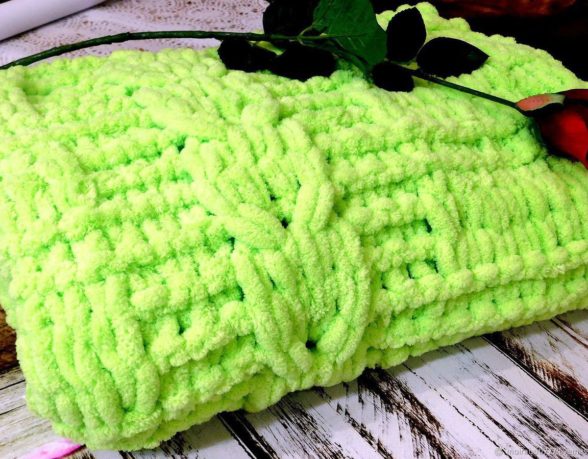 Вязаный плюшевый плед как нежное облачко окутает вашего малыша.
