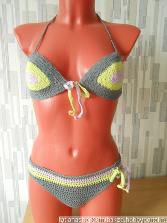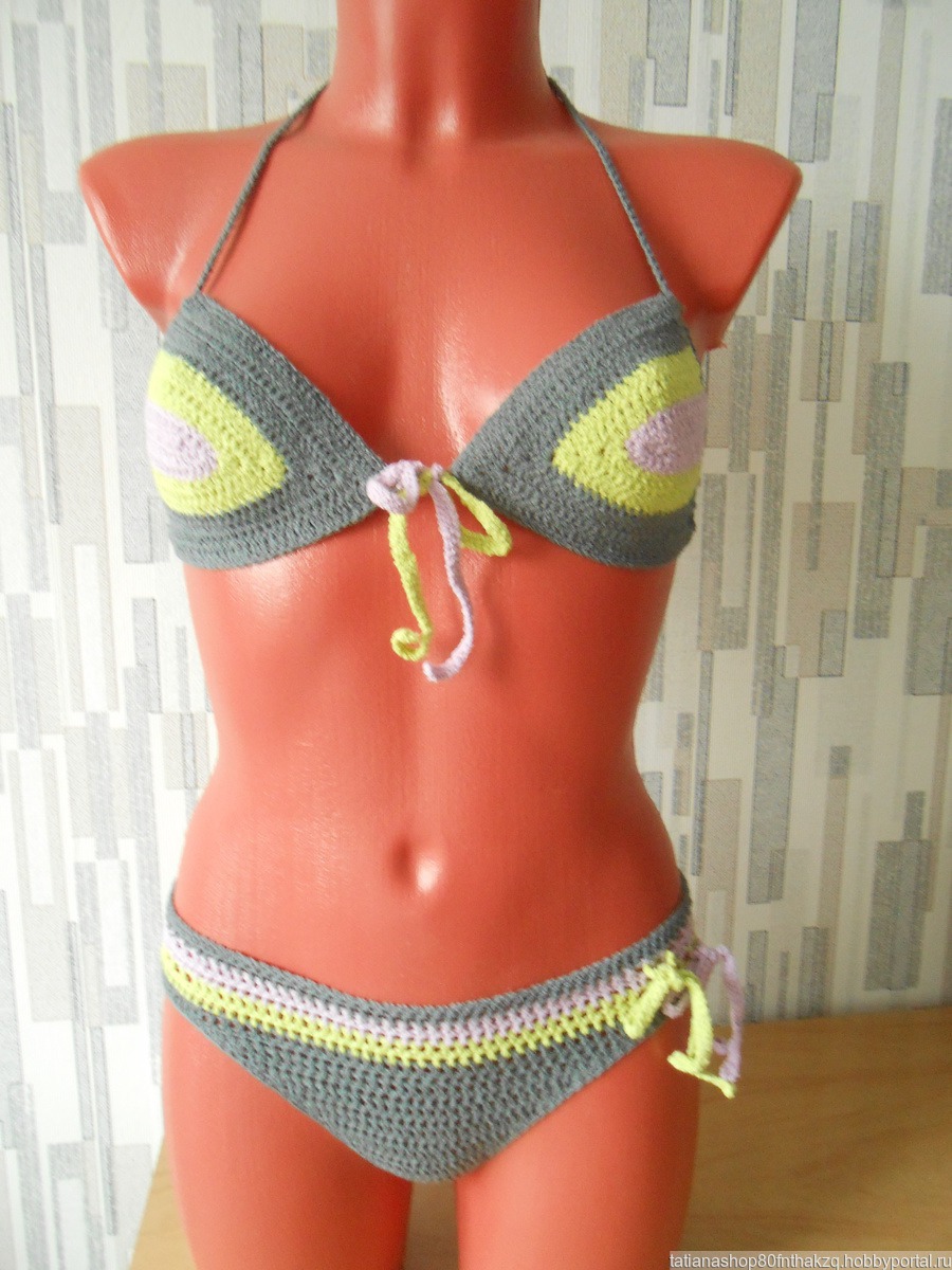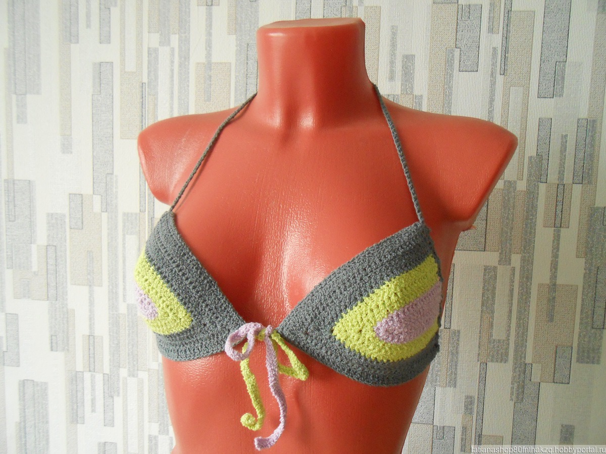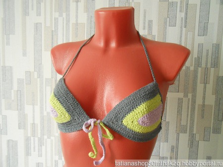 Раздельный купальник связан крючком из стрейч бамбука. Пряжа хорошо сохраняет форму и цвет изделия, быстро сохнет. Лиф № 2
