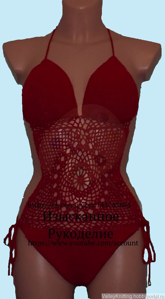 красный, ручная работа, крючком, большой размер, красивый, купальник вязаный, Трикини