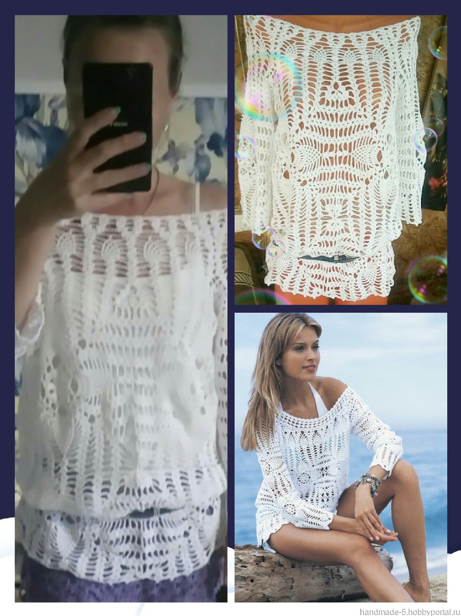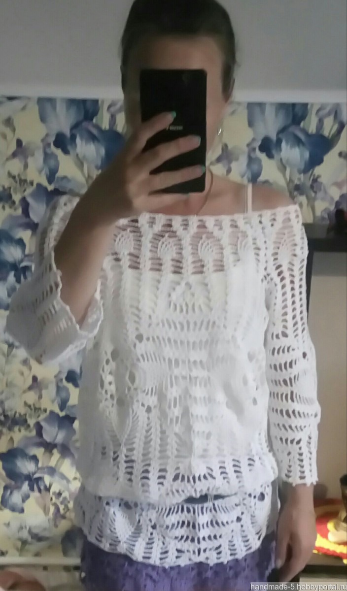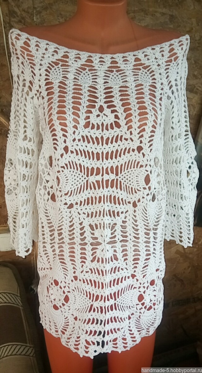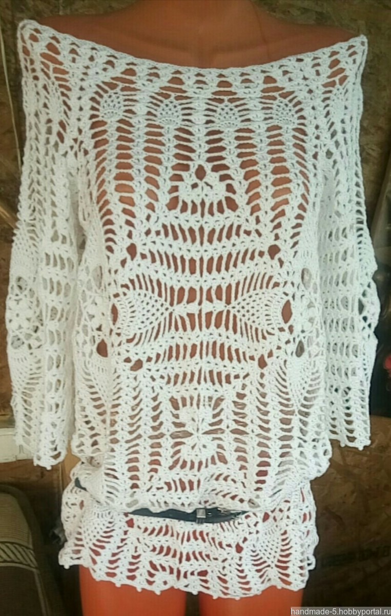 Белая, ажурная туничка ручной работы, связанная крючком из 100% хлопка.
