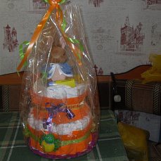 Отличный подарок ребенку на любой праздник. Цена варьирует в зависимости от фирмы и содержимого (внутри торта из памперсов-детская косметика). С учетом Ваших пожеланий.