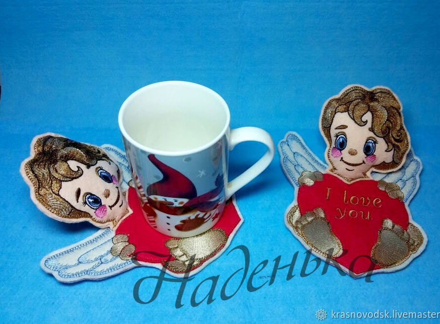 подарок девушке, день всех влюбленных, подставка под кружку, купидон