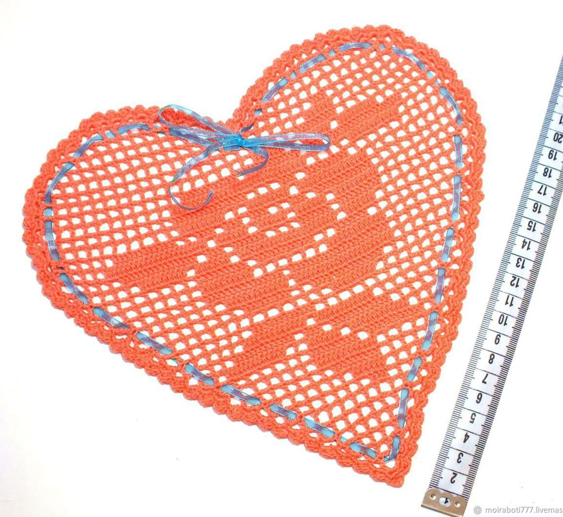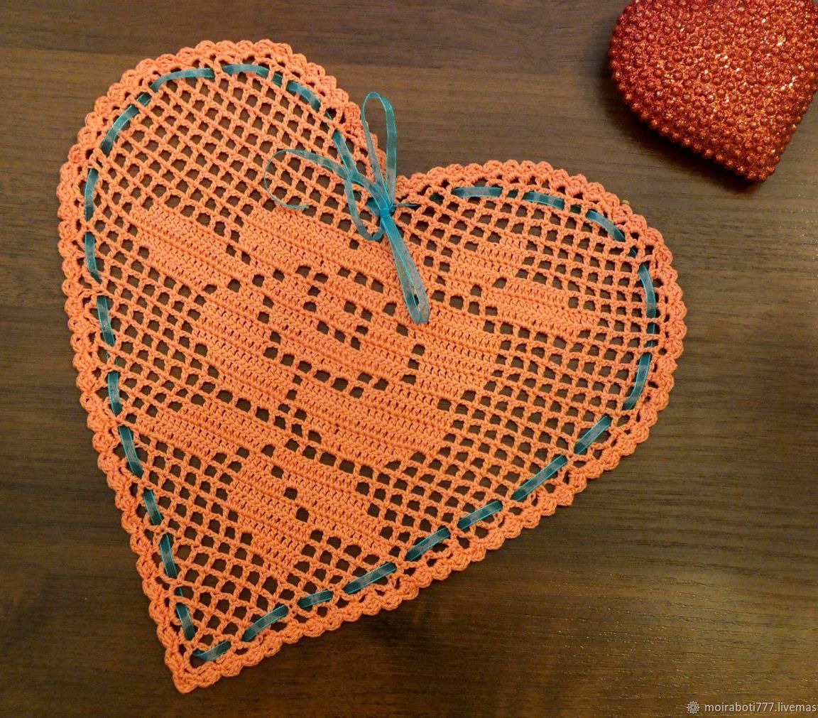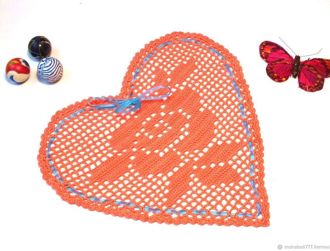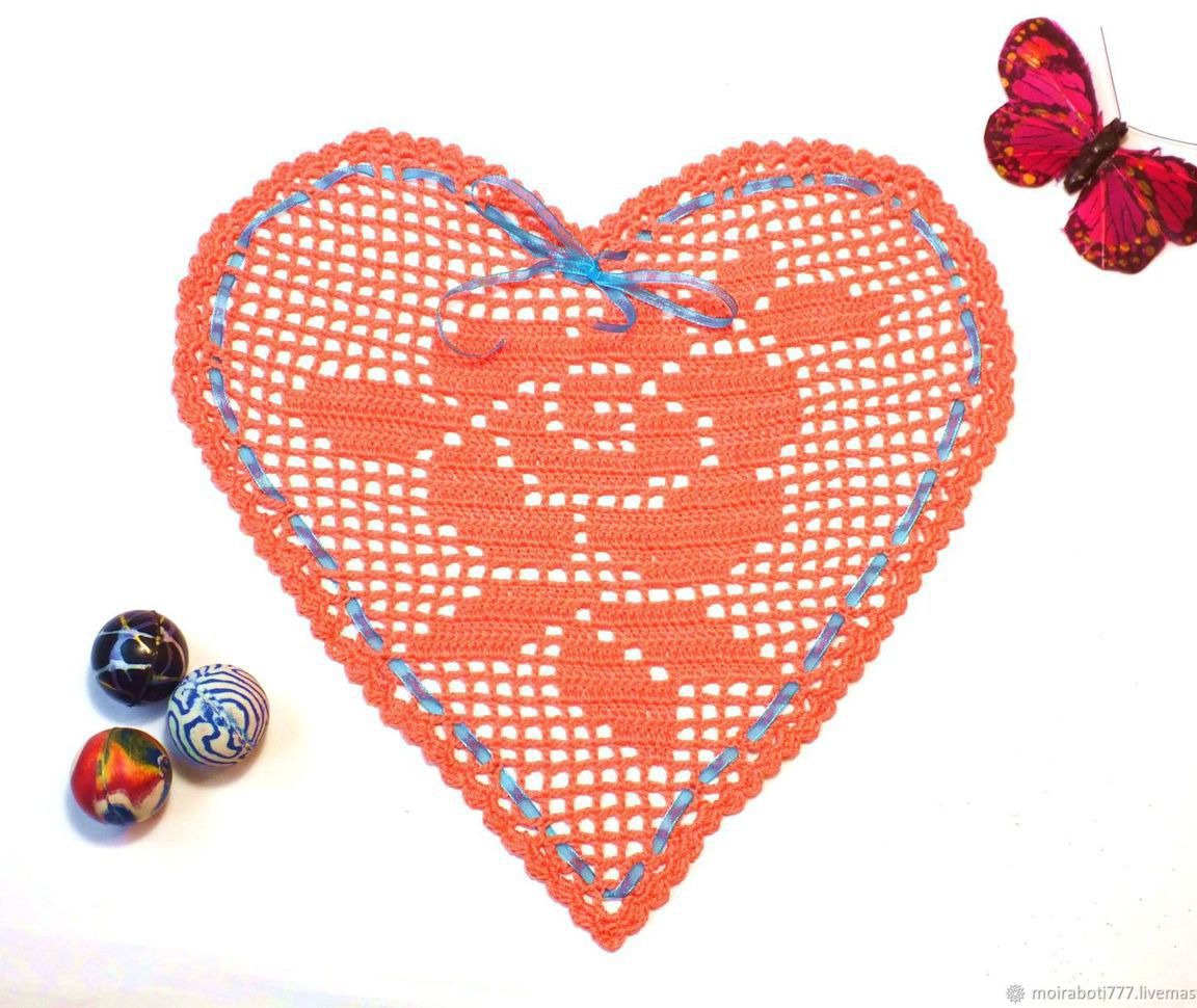 ручная работа, крючком, подарок, салфетка, подарок на 14 февраля, валентинка, ко дню влюбленных