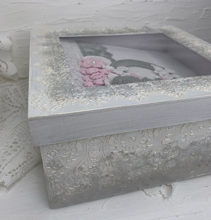 Нежный альбом для самых трогательных моментов, с большим количеством мест для хранения фотографий. Альбом хранится в нежно белой коробке с окошком.