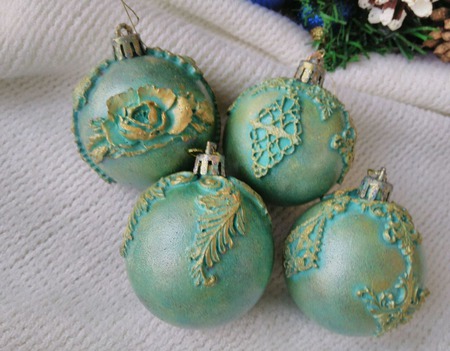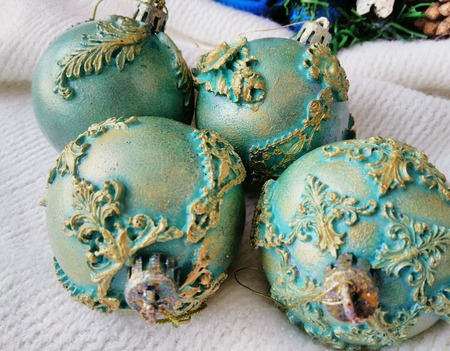 Нежный, свежий, морозный, нарядный и праздничный набор шаров с изящной лепниной ручной работы. В единственном экземпляре только для Вас! Идеальный подарок и новогоднее украшение ёлочки!