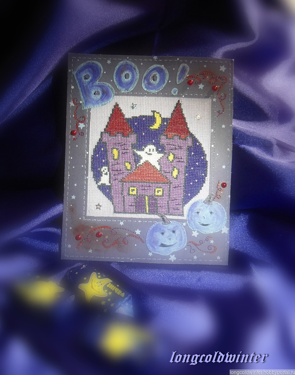 открытка, хэллоуин, сувениры и подарки, открытка ручной работы, подарки к праздникам, вышитые открытки