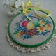 пасхальный декор,пасхальное украшение дома,картина в подарок, вышитая картина,круглая картина, картина в пяльцах, пяльцы картина, вышивка, весна,цветы