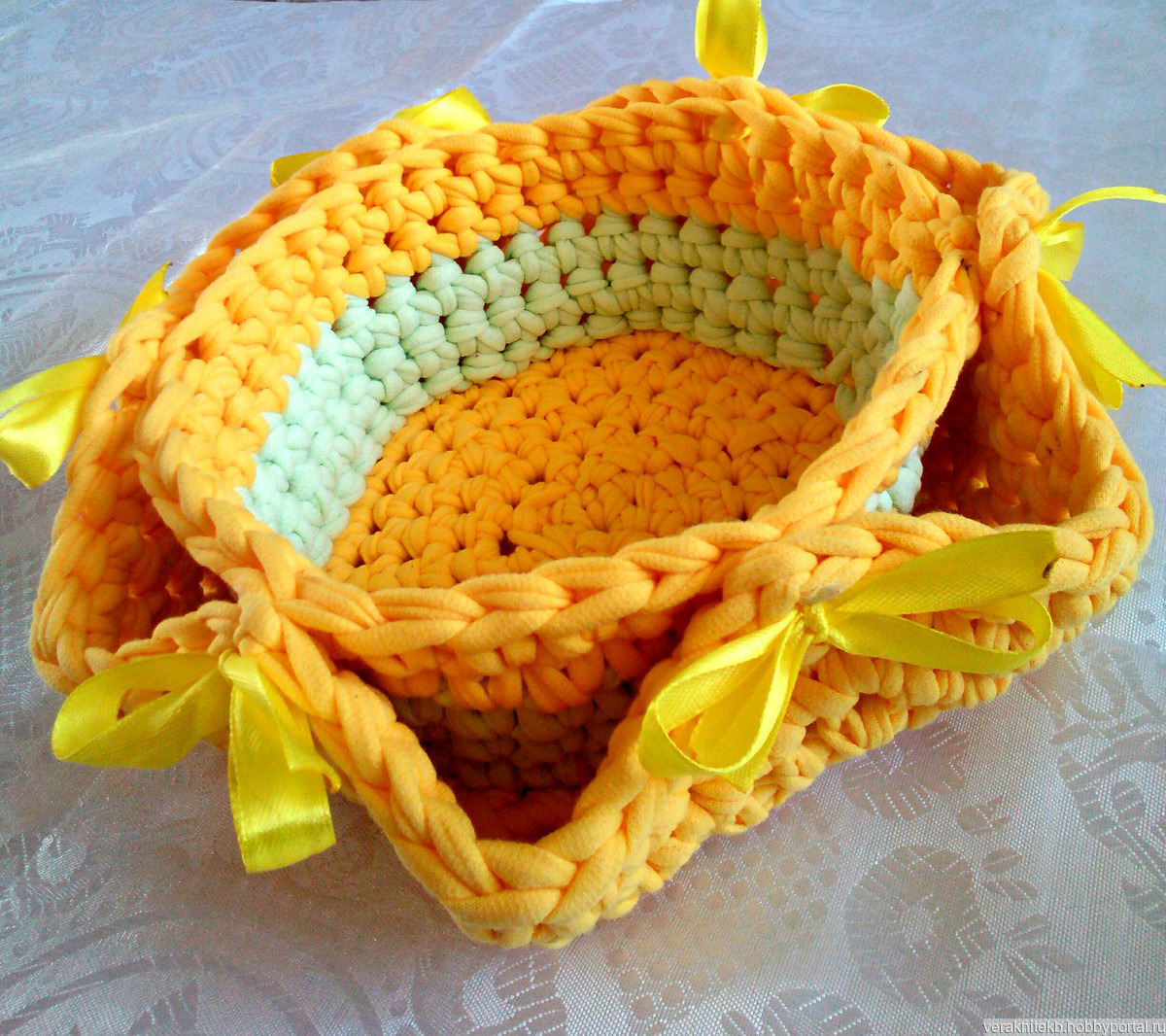 Пасхальная корзинка из трикотажной пряжи. Диаметр корзинки для кулича - 15 см