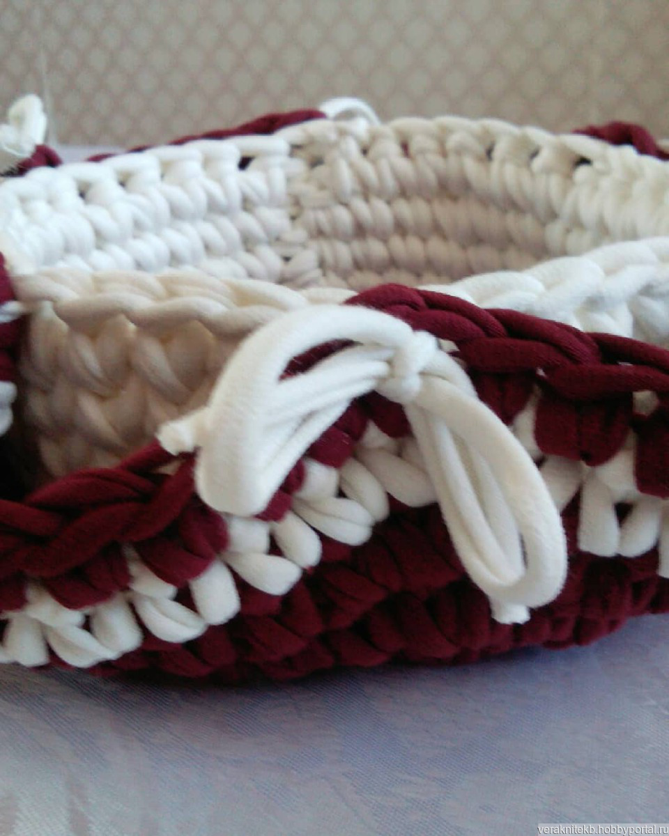 Пасхальная корзинка из трикотажной пряжи. Диаметр корзинки для кулича - 15 см
