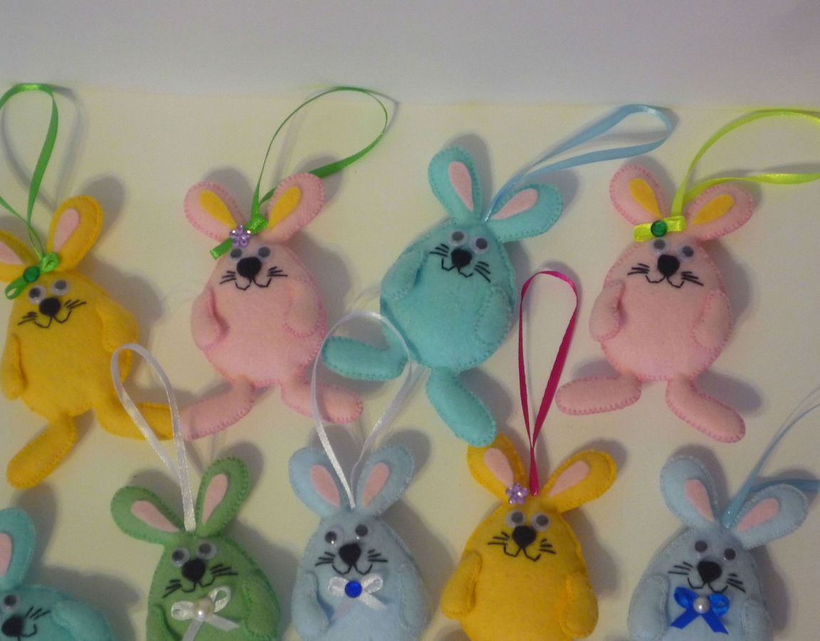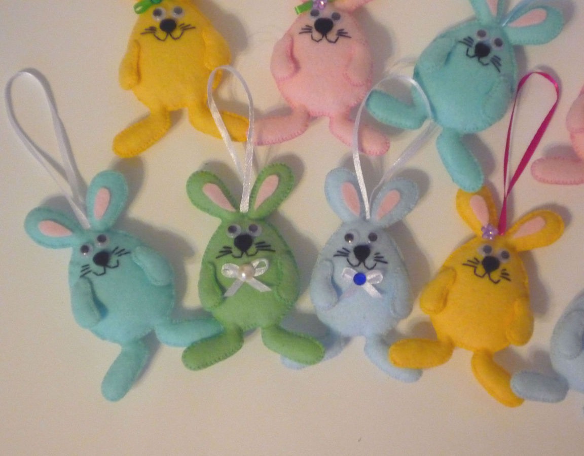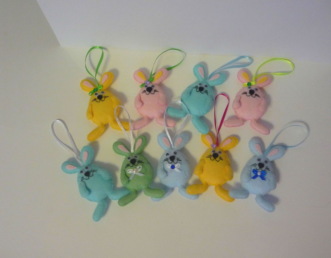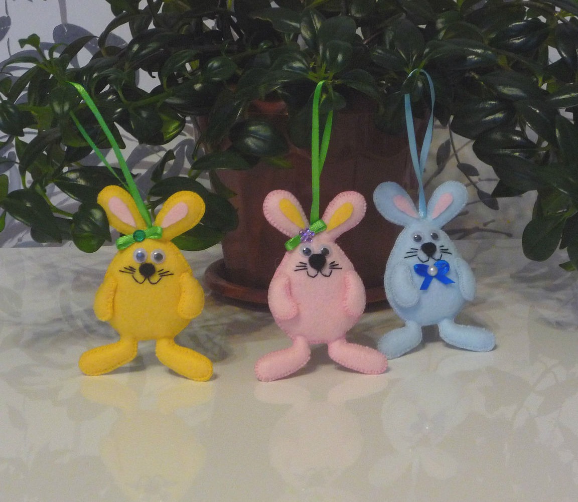 желтый, голубой, фетр, розовый, заяц, подарок, кролик, комбинированный, пасха, пасхальный сувенир, пасхальный подарок, пасхальные яйца, пасхальный декор, зеленый цвет, заяц игрушка, подарок к пасхе, фетровая игрушка, пастельные тона, кролик игрушка, Пасхальный кролик