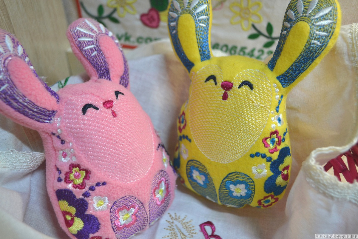 Пасхальные братцы-кролики, игрушки для декора интерьера, подарка к празднику. Выполнены из флиса, вышивка. Набиты наполнителем для игрушек. размер 12х18 см