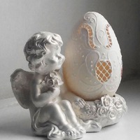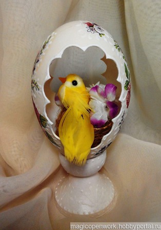 Яйцо интерьерное Высота с подставкой 11 см. Резьба ажурная + декупаж + роспись контуром. Выполню с вашими инициалами.