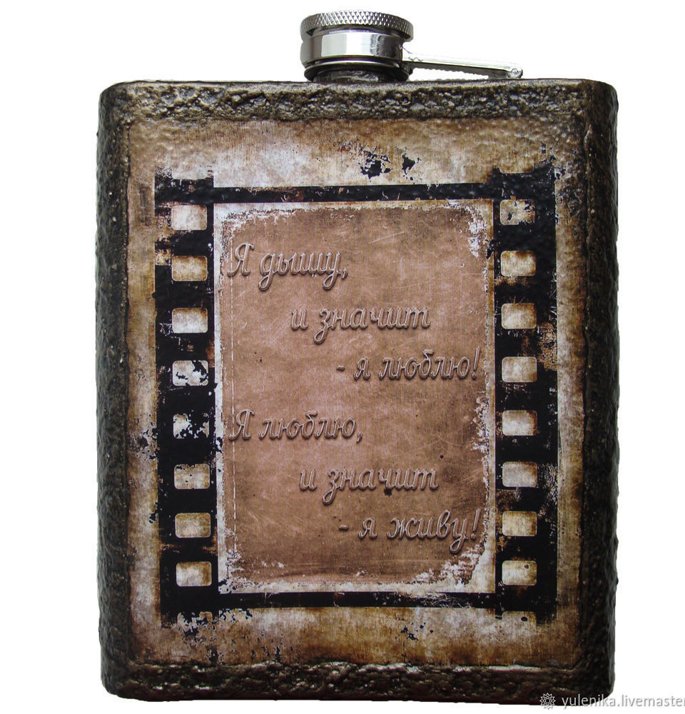 Эксклюзивная фляжка - отличный функциональный подарок для любого мужчины! Её современный вид появился в XVIII веке у представителей высших сословий. Фляжки украшались гербами, гравюрами и камнями. Предназначались они для того, чтобы эффектно выпить за удачливую охоту или сказать тост за присутствующих дам. Особенно порадует фляжка путешественников, туристов, рыбаков и охотников. Пригубив из них можно немного согреться , обработать рану, разжечь костёр... Этот мужской аксессуар может стать стильным презентом на любой праздник!