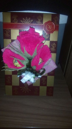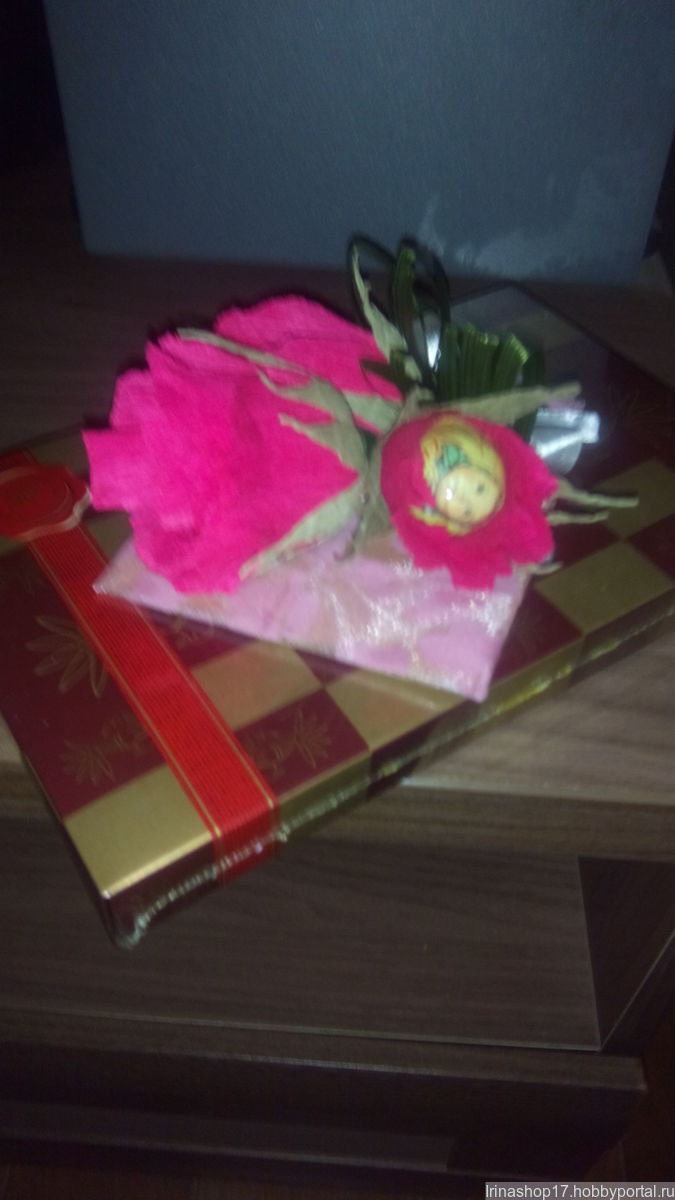 Мини букеты, для украшения коробок конфет, шоколадок. Цена зависит от количества цветов и конфет