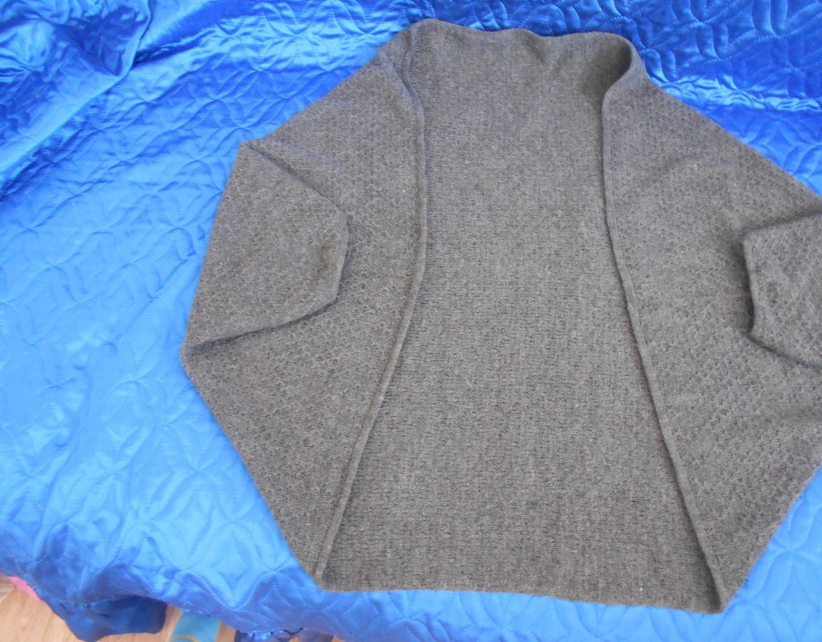 оверсайз, 48-52. От локтя до локтя 105 см, длина по спинке 80 см.