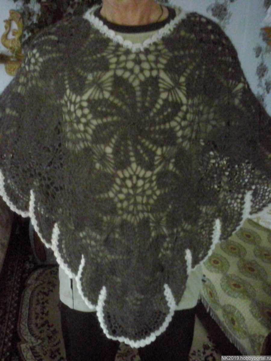 Пончо-накидка-пелерина вязаное крючком желтый ажур