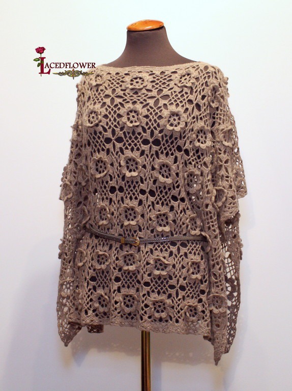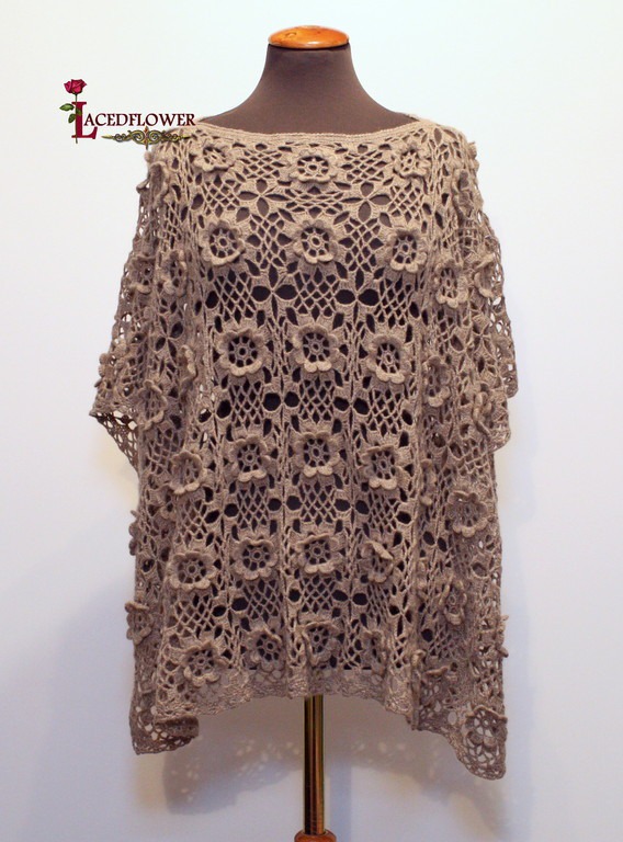 Шикарное пончо из 100% кашемира! 108 цветков, связанных между собой в процессе вязания. Без швов! Благородный цвет в натуральной гамме , легкий пушок, абсолютная мягкость и комфорт!