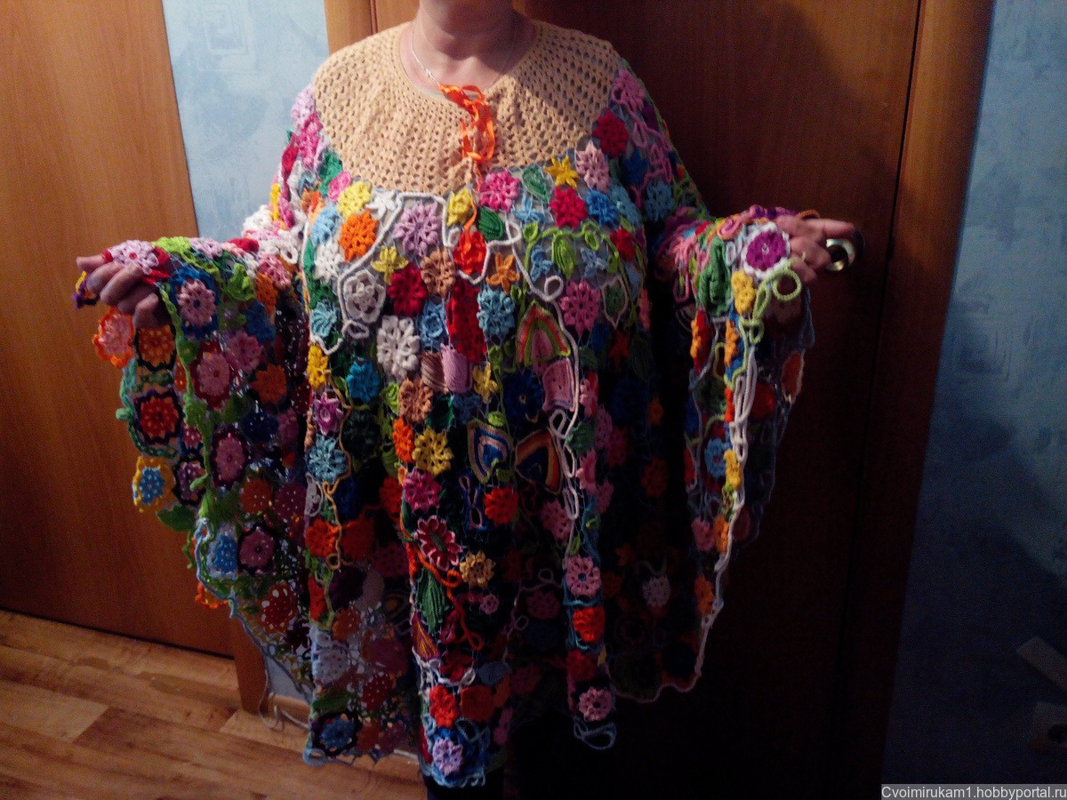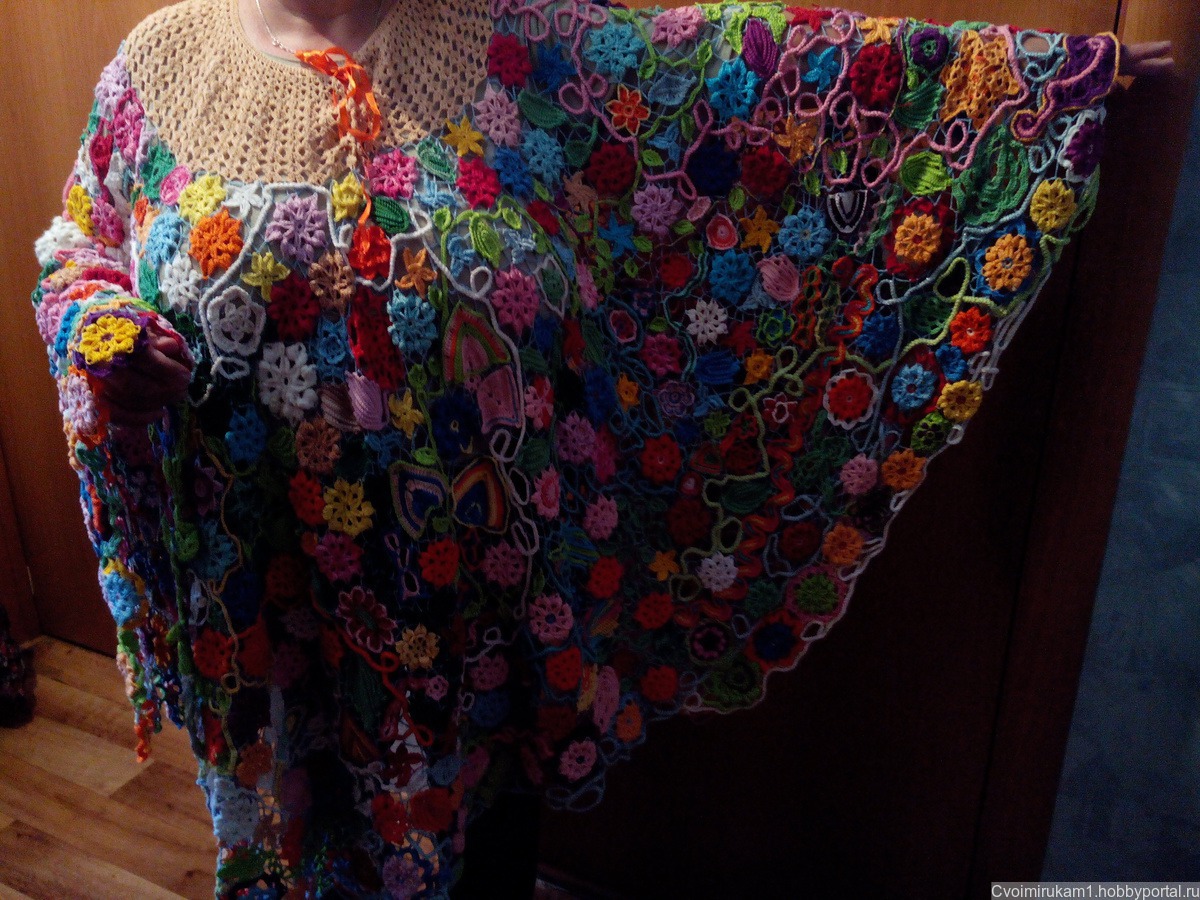 Продам пончо - авторская работа. Каждый фрагмент связан отдельно и все собрано в единое целое.