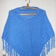 однотонный, голубой, пончо, пончо вязаное, пончо крючком, пончо купить, пончо из шерсти