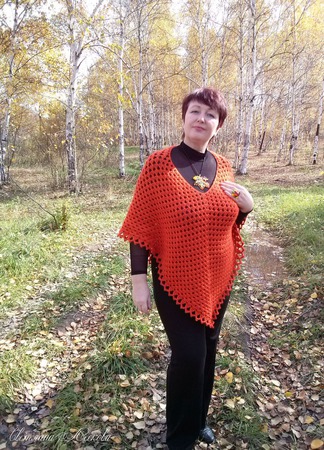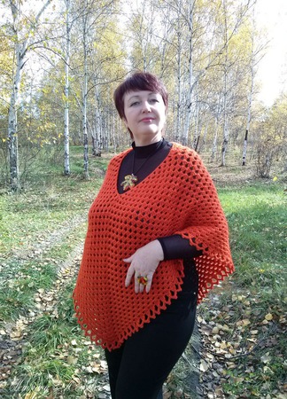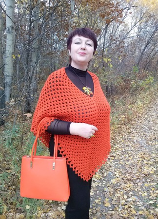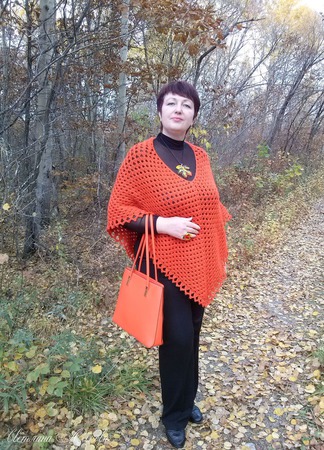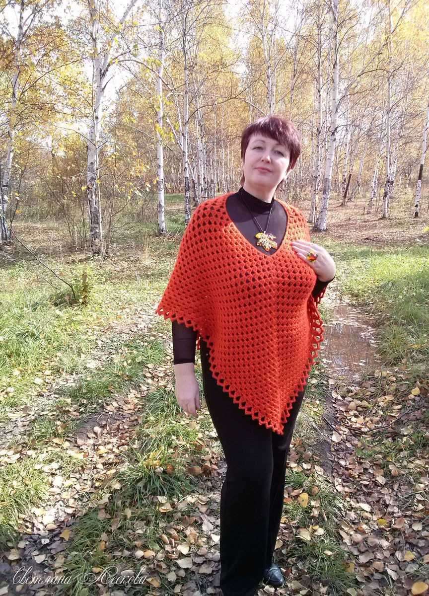 оранжевый, осень, ручное вязание, пончо, ручная работа handmade, ручная работа купить, весна, купить подарок, ручная вязка, купить, купить пончо