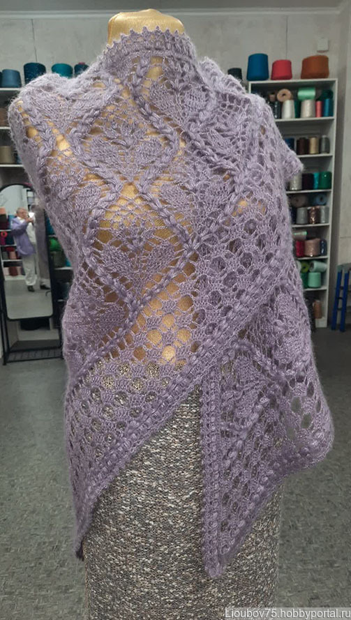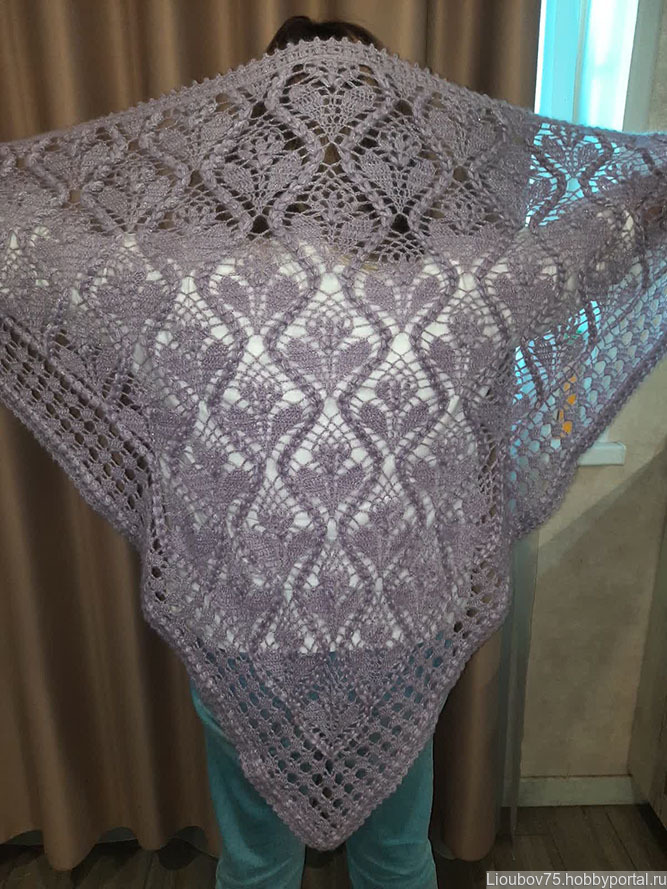 Нежнейшая, легкая, почти невесомая шаль Лаванда в серебряном инее украсит ваши плечи у камина, на прогулке и в ненастную погоду. Цвет пыльная лаванда - нежно сиреневый с искорками