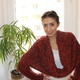 На крупную даму его можно одеть на трубой на верхнюю одежду, красиво выложить впереди складками-лодочками. На худенькую даму, пончо можно носить еще и как обьемный снуд на шее.