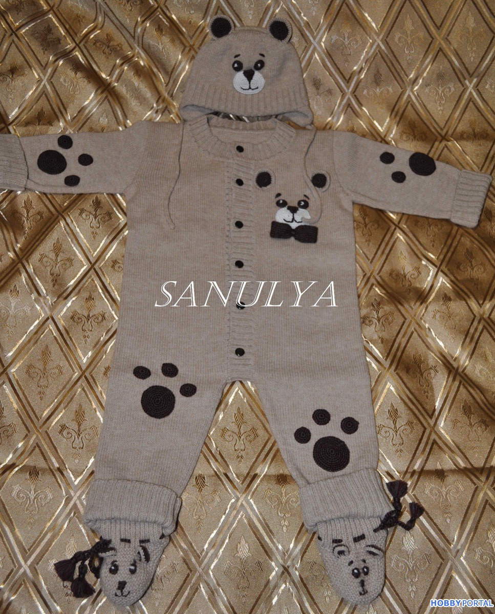 Здравствуйте. Мне очень надо связать такой костюмчик замечательный как у Вас, родила крестница. Но я не понимаю как это делать. Если вам не сложно поделитесь описанием. Заранее спасибо.