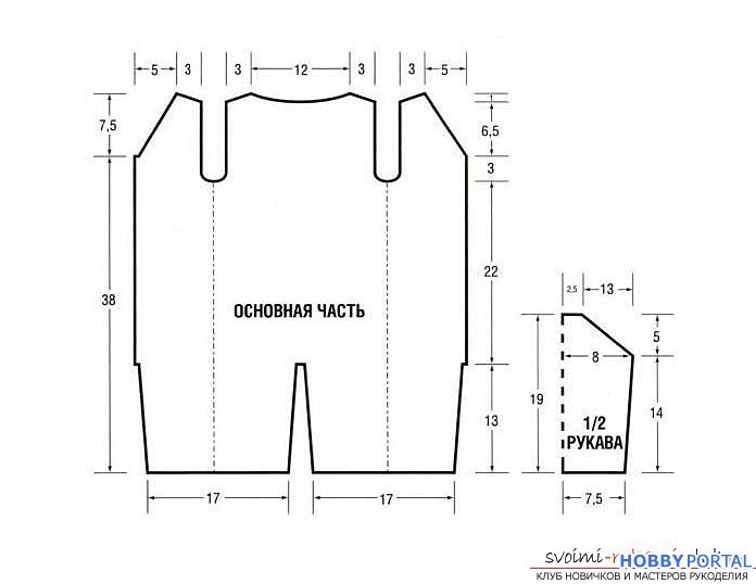 ну, например, вот выкройка, только вырез горловины делала круглый. А принцип вывязывания и внешний вид изделия такие же.