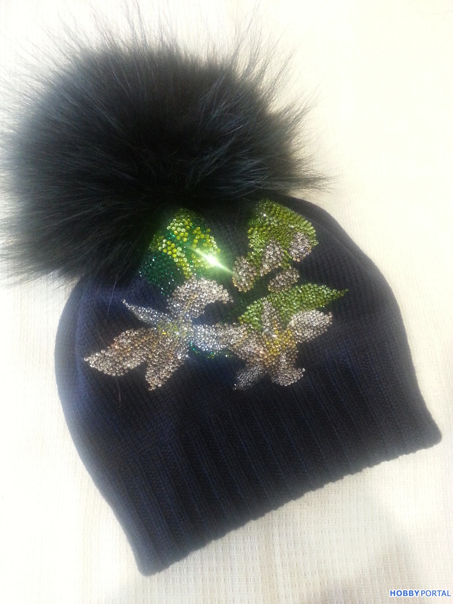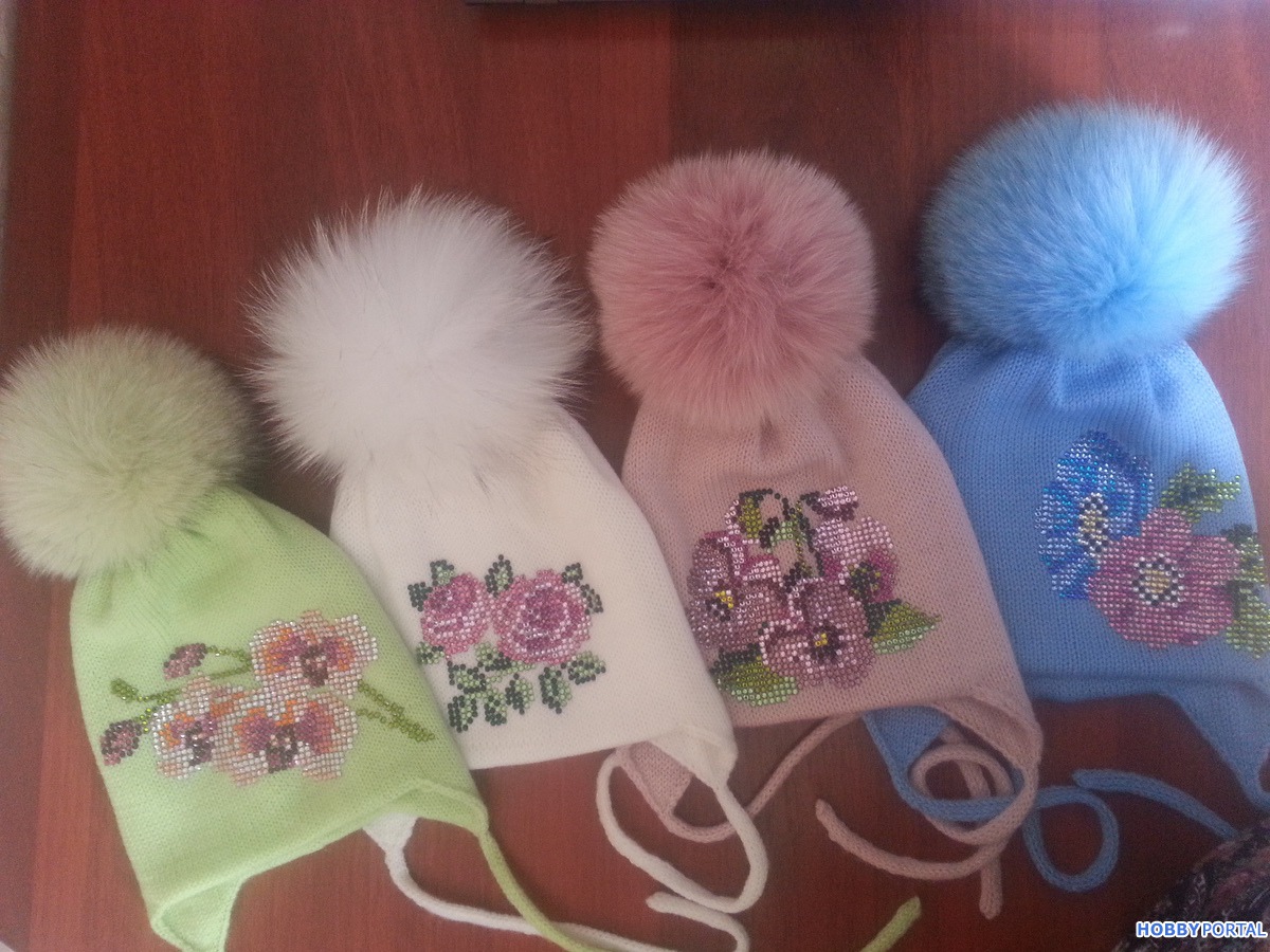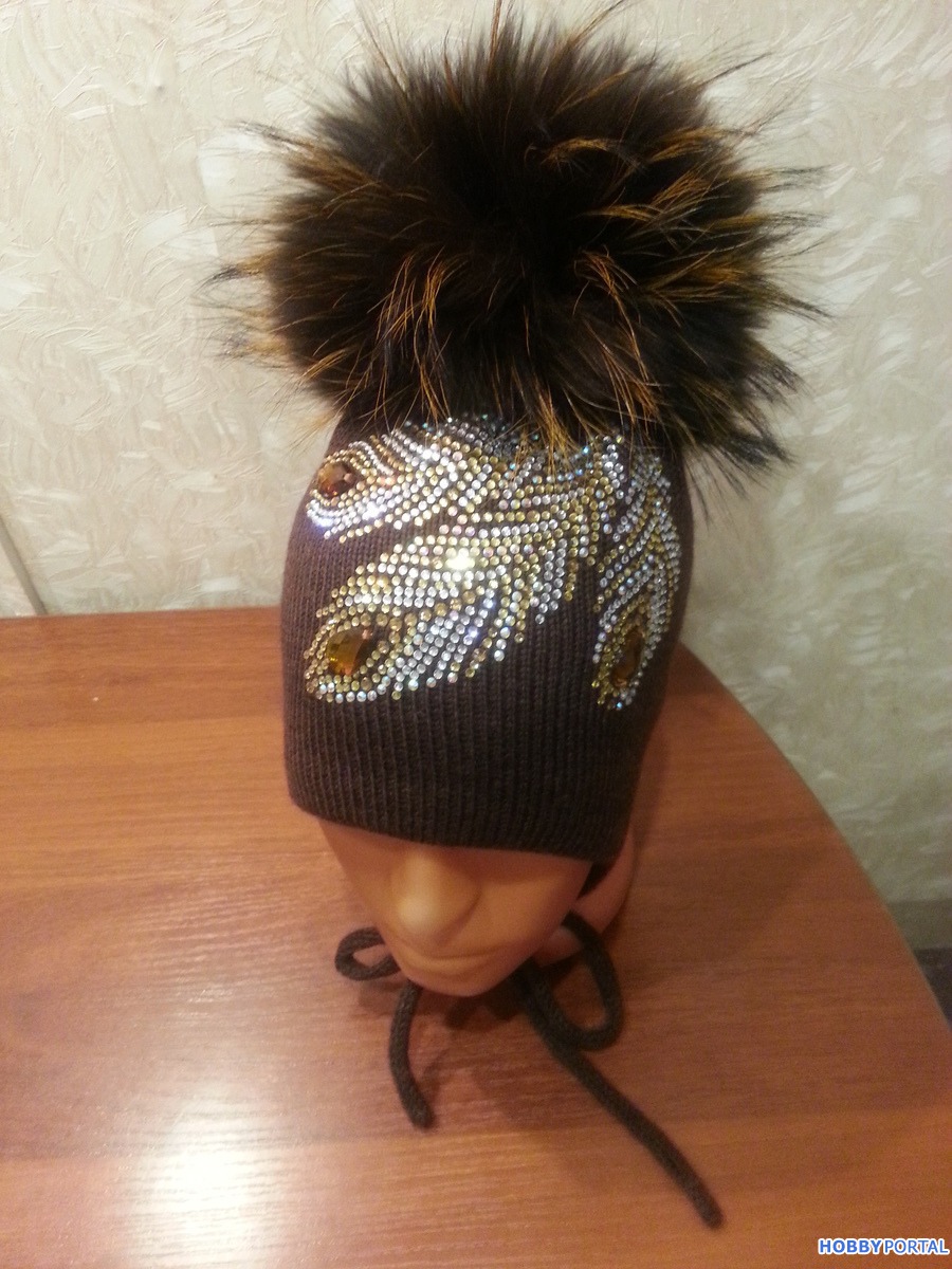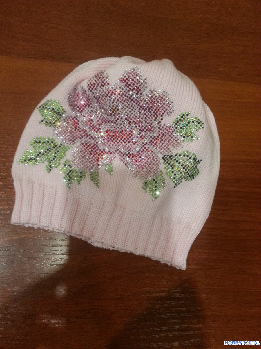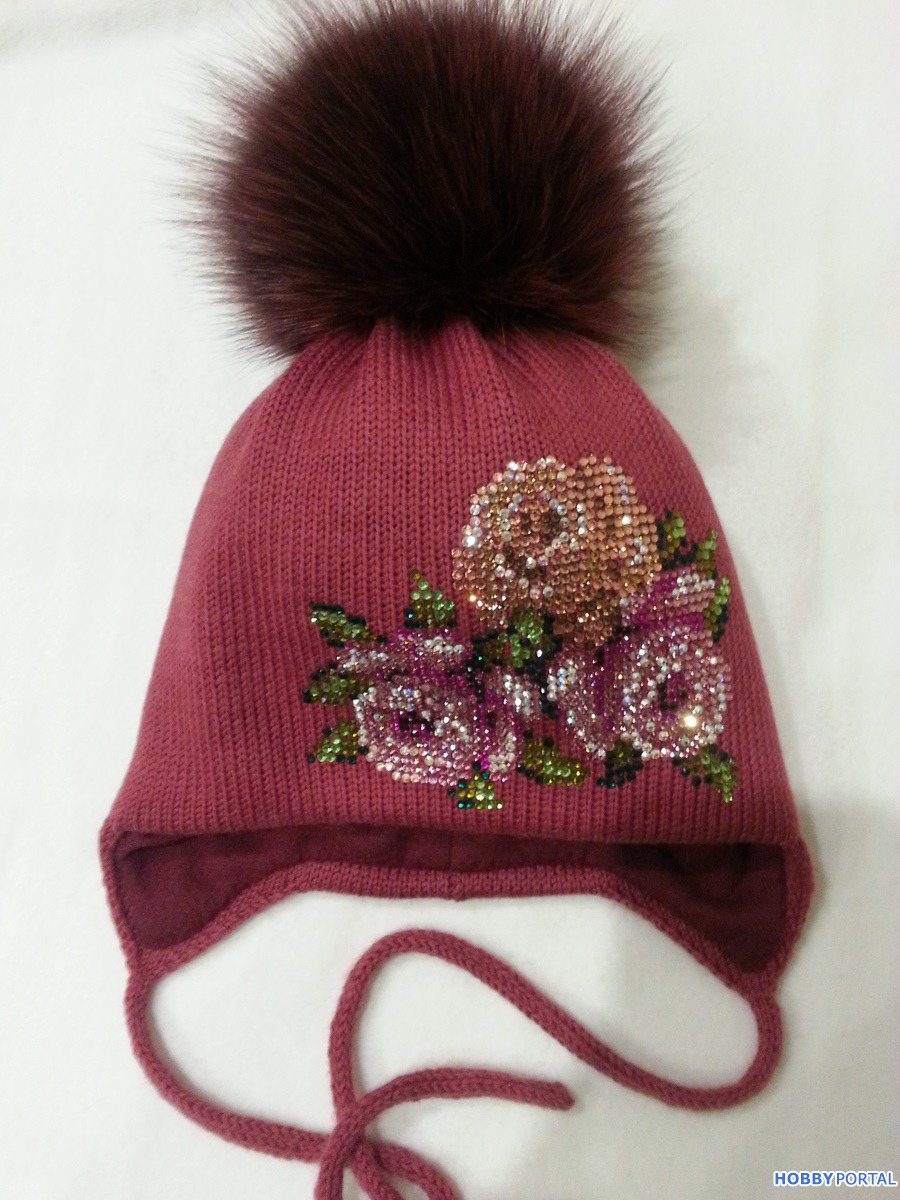 Вяжу на заказ шапочки для деток и взрослых с авторским декором из хрустальных страз ручной выкладки.