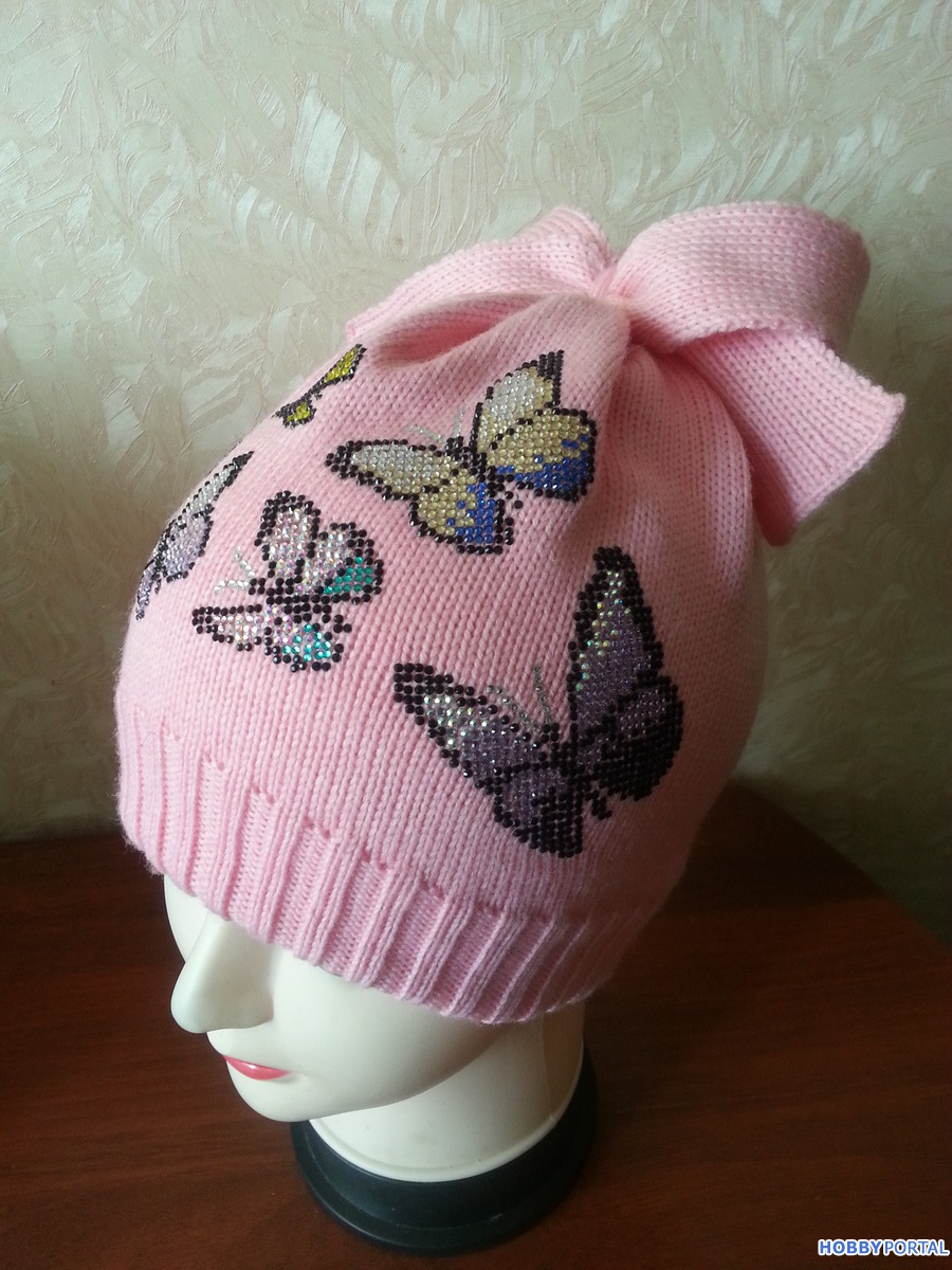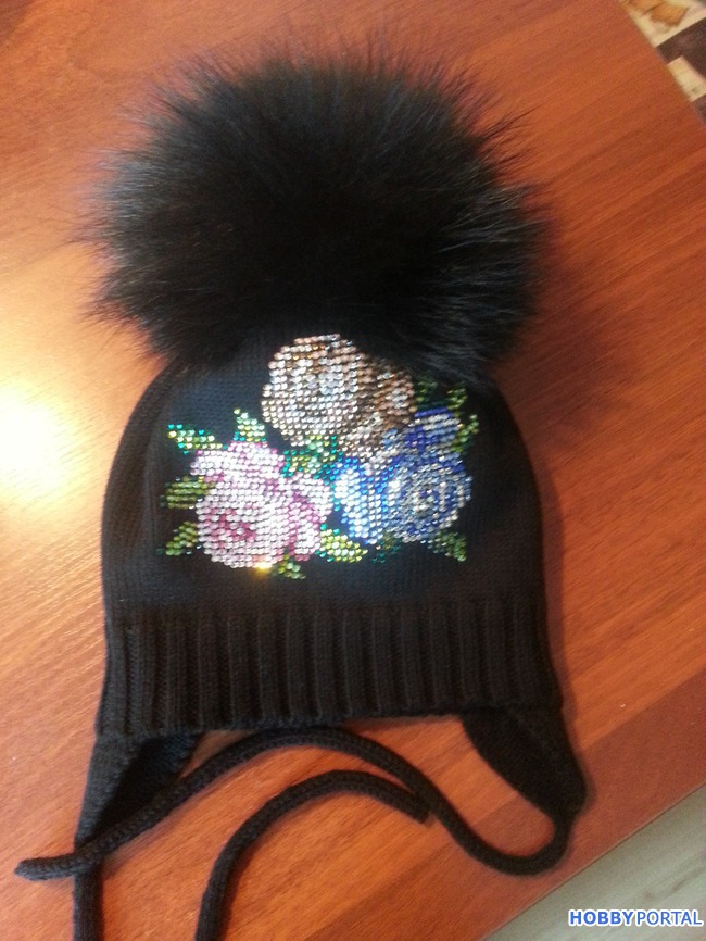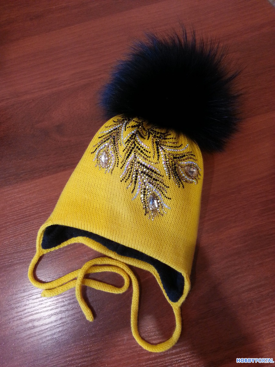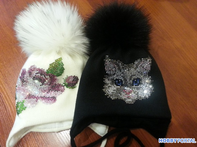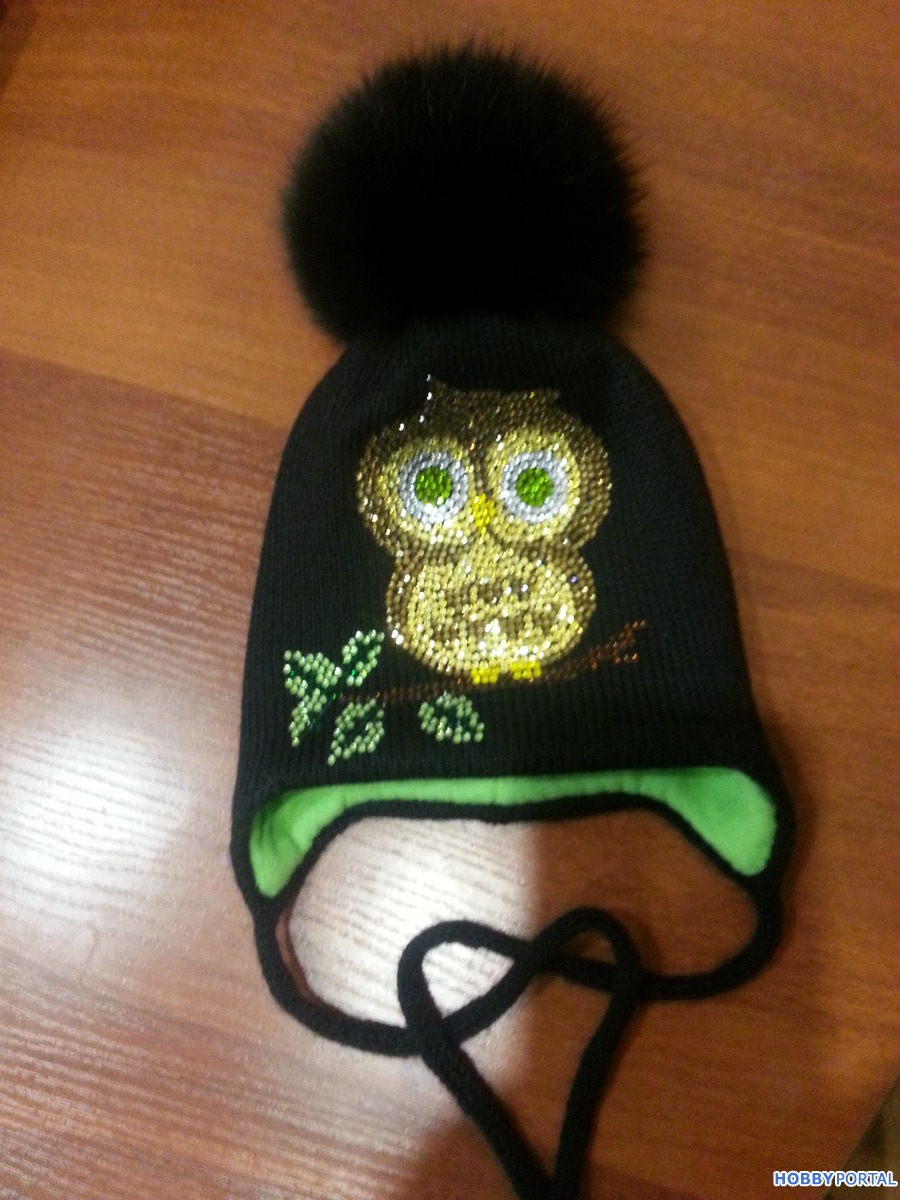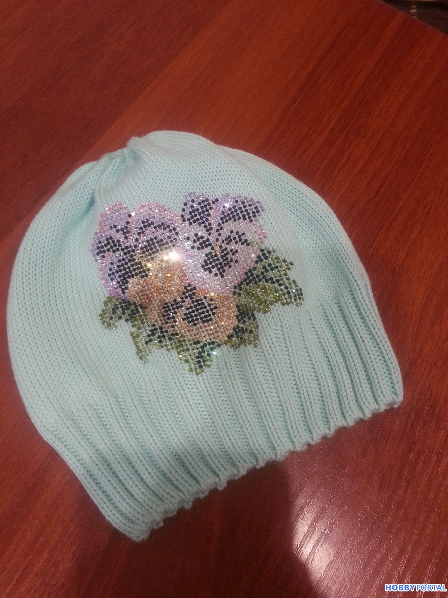 Вяжу на заказ шапочки для деток и взрослых с авторским декором из хрустальных страз ручной выкладки.