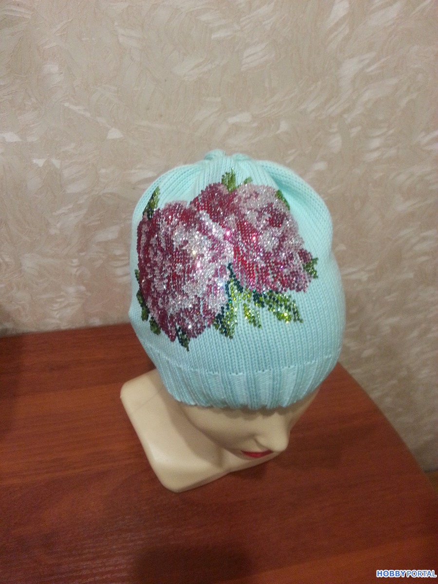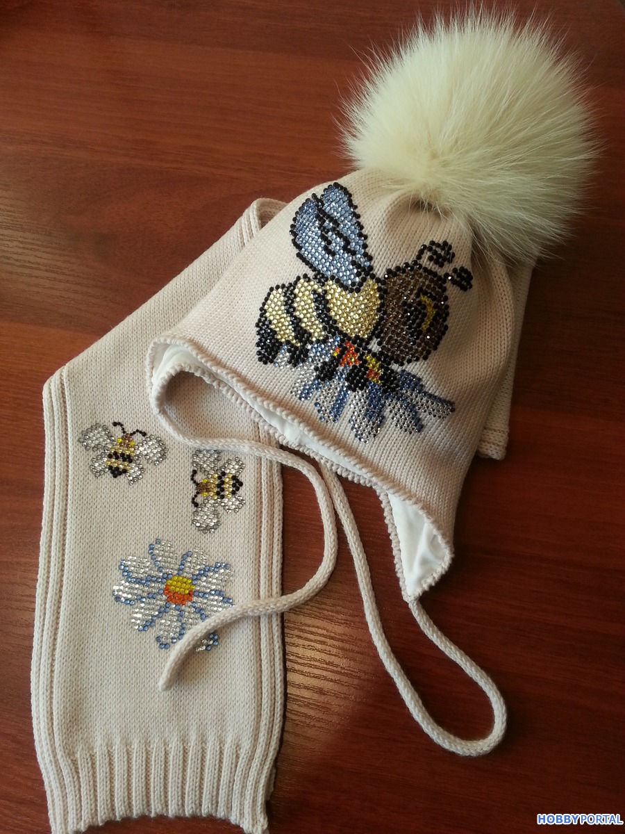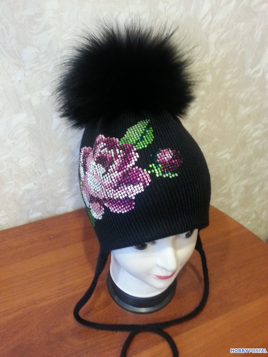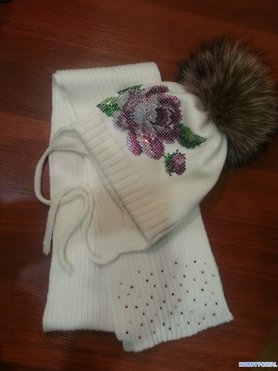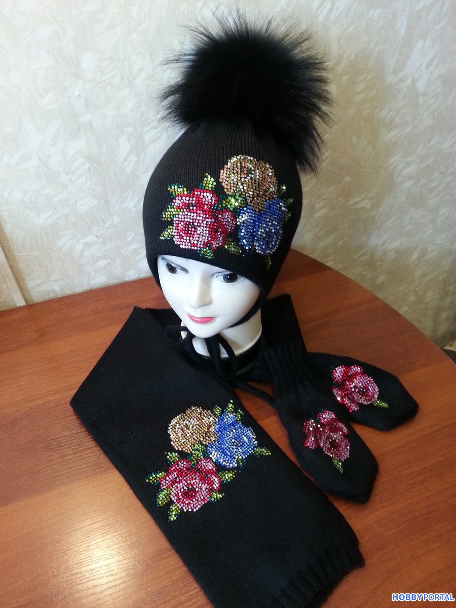 Вяжу на заказ шапочки для деток и взрослых с авторским декором из хрустальных страз ручной выкладки.