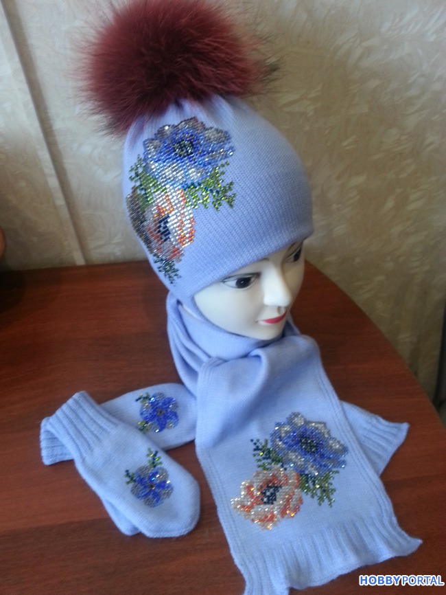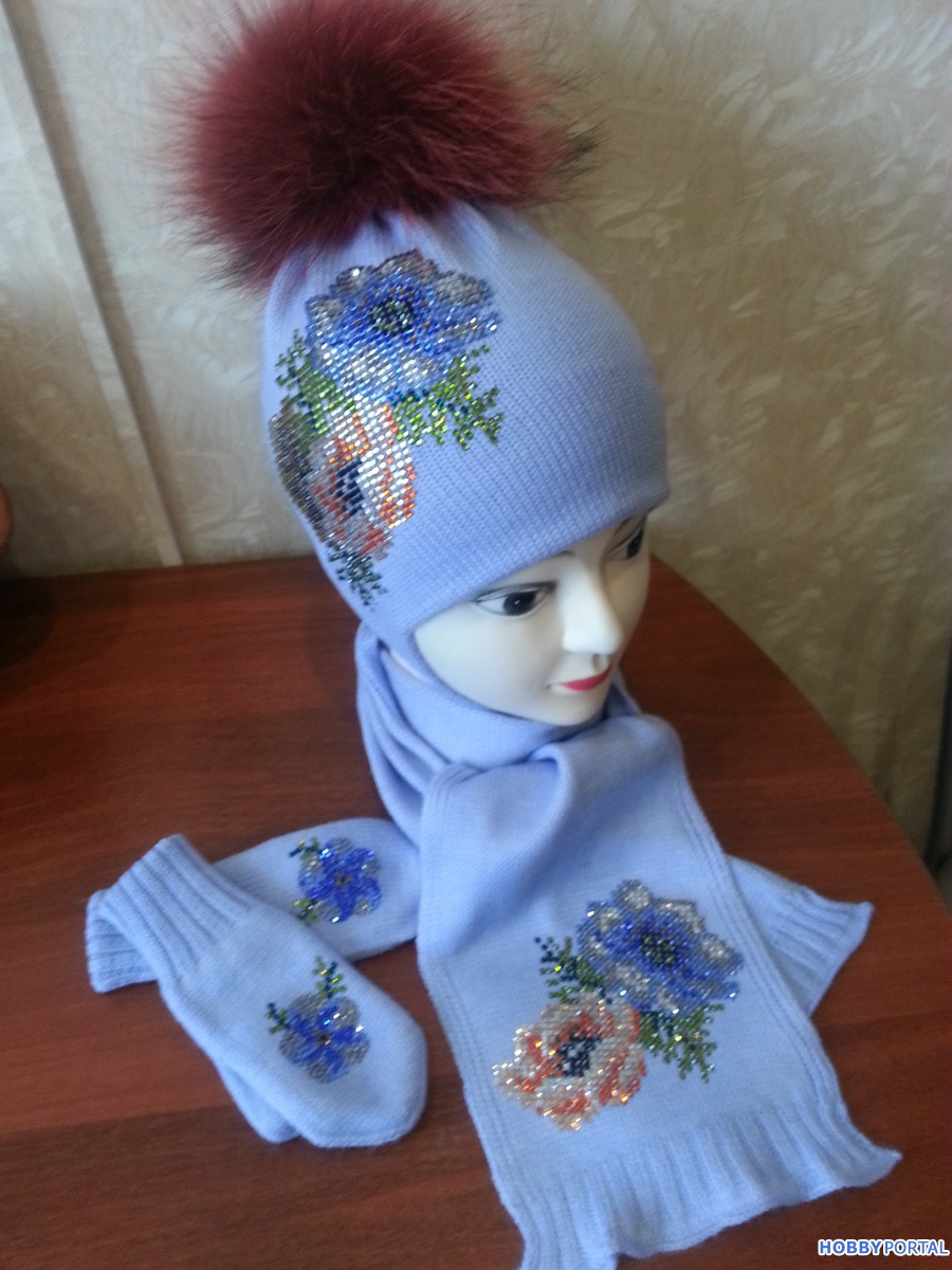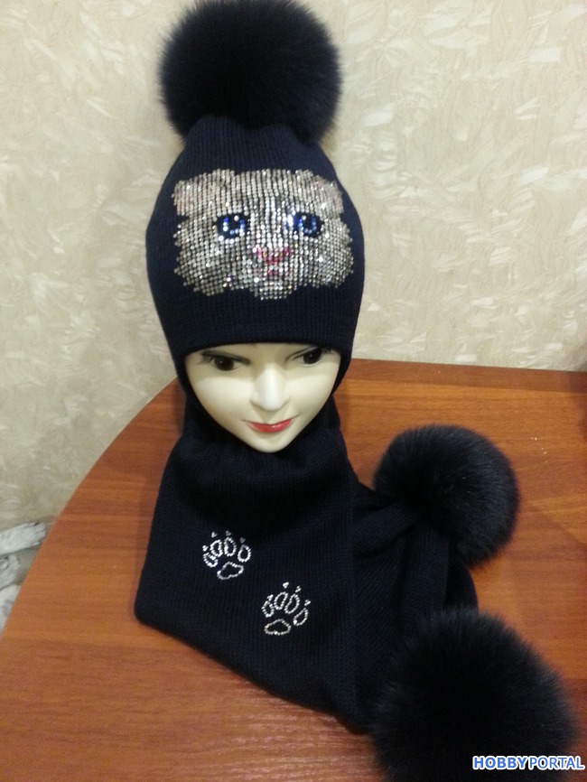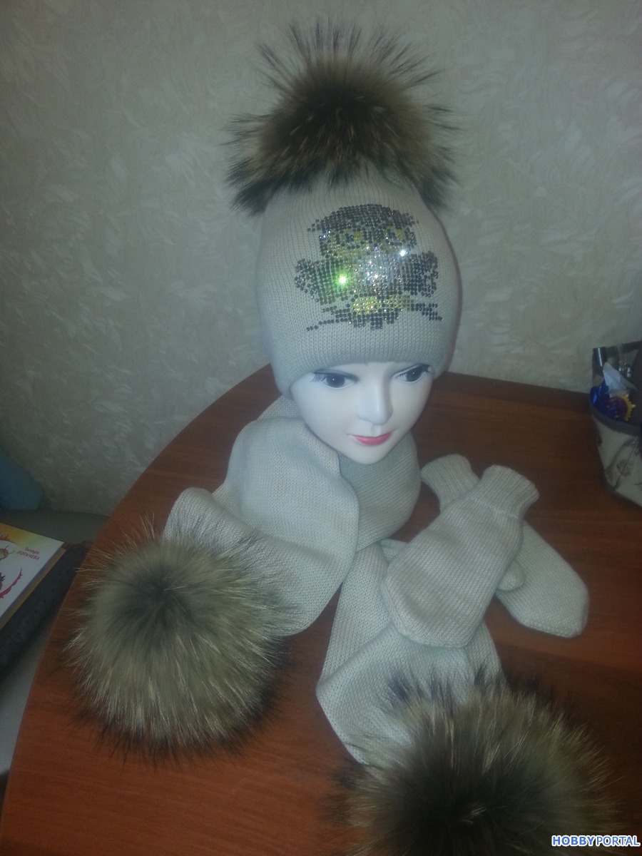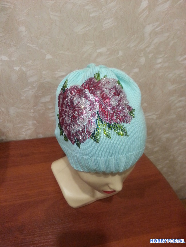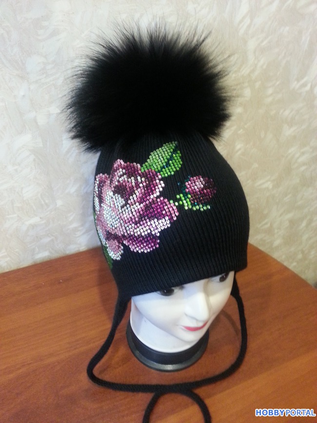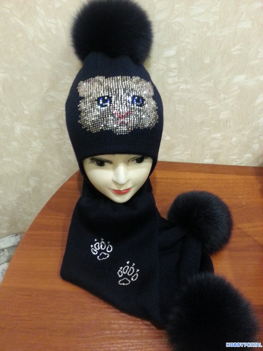 Вяжу на заказ шапочки для деток и взрослых с авторским декором из хрустальных страз ручной выкладки.
