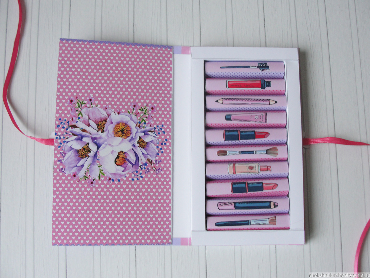 Шаблон для самостоятельного изготовления- книжка на 10 плиточек шоколада Вдохновение.