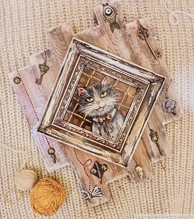 выполнена из брусков дерева, холст, рамка, фурнитура, роспись акриловыми красками.