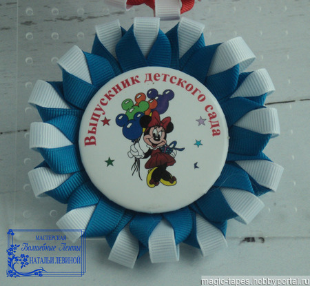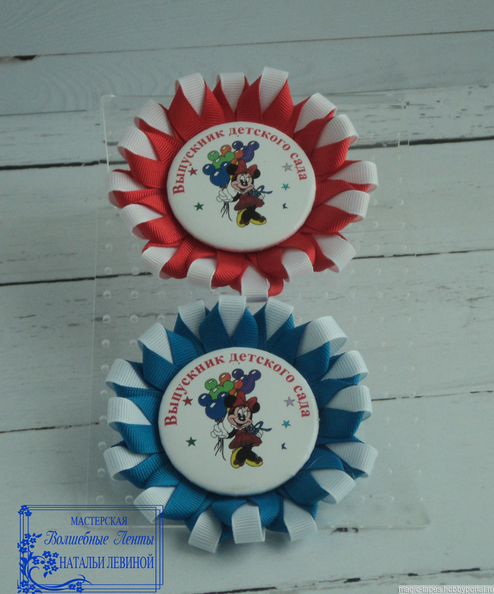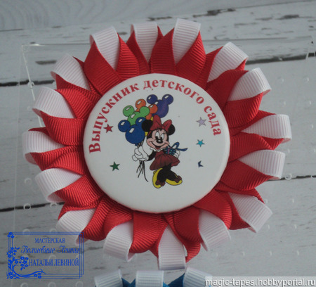 - Розетка выполнена из репсовой ленты двух цветов шириной 1 см.