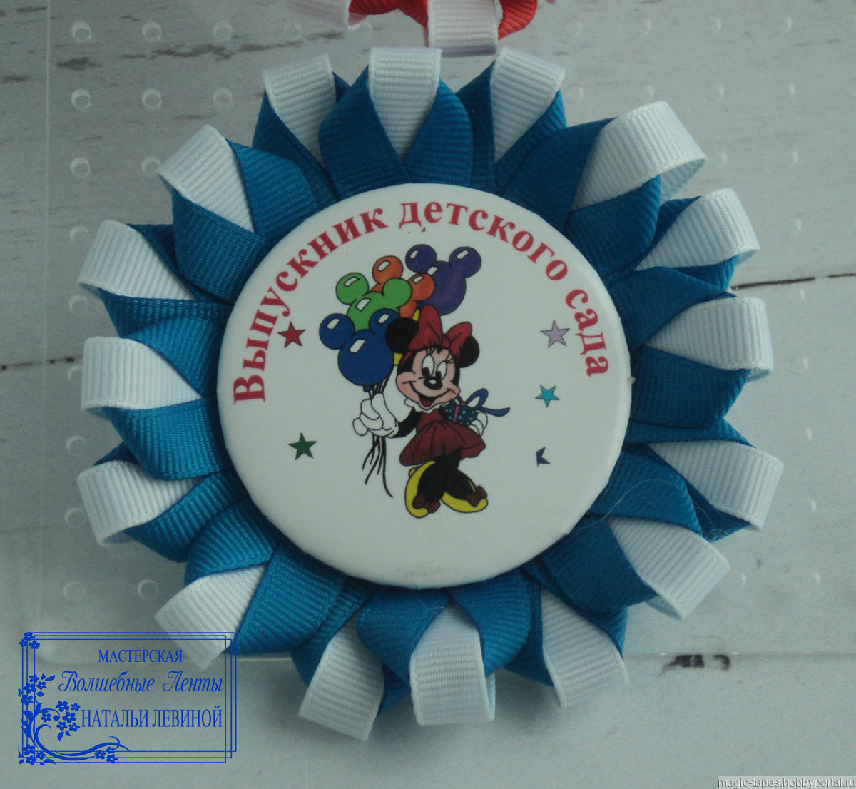 - В центре закреплен значок, диаметр - 5.6 см. Макет взят для примера.
