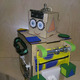 Голова вращается на 360 градусов, в ней есть место для хранения. Глаза - шестеренки.