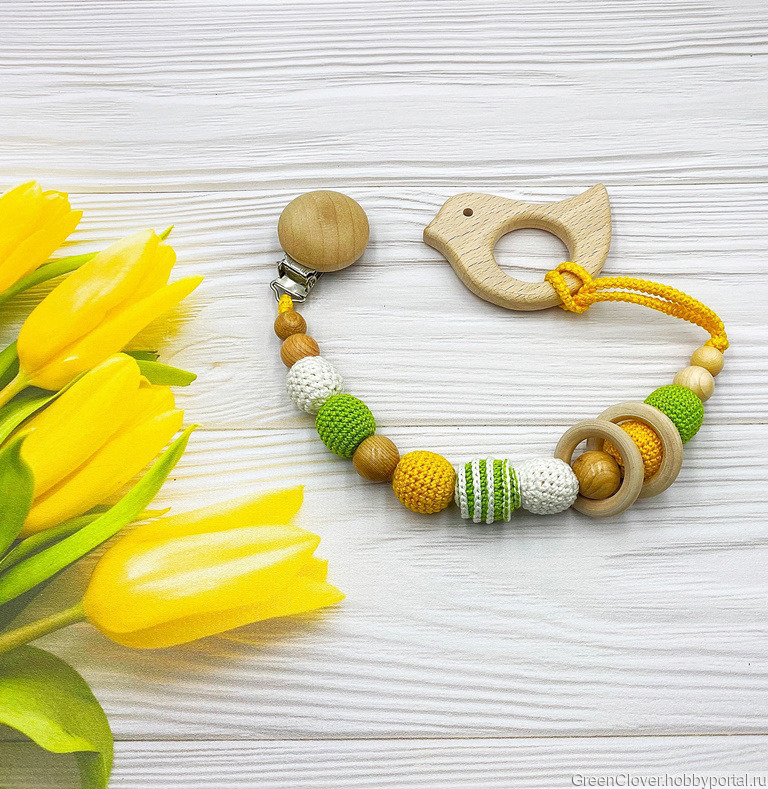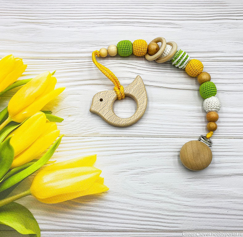 подарок малышу, грызунок, держатель для соски, грызунок деревянный, подвеска для коляски