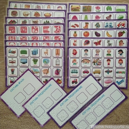 Состав игрового набора: 4 поля для составления предложения 260 карточек