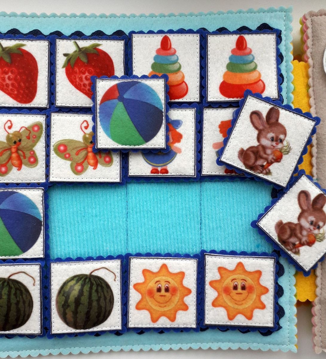 1 страница - мемори - поиск парных картинок хорошо тренирует память и внимание, всего 16 карточек.