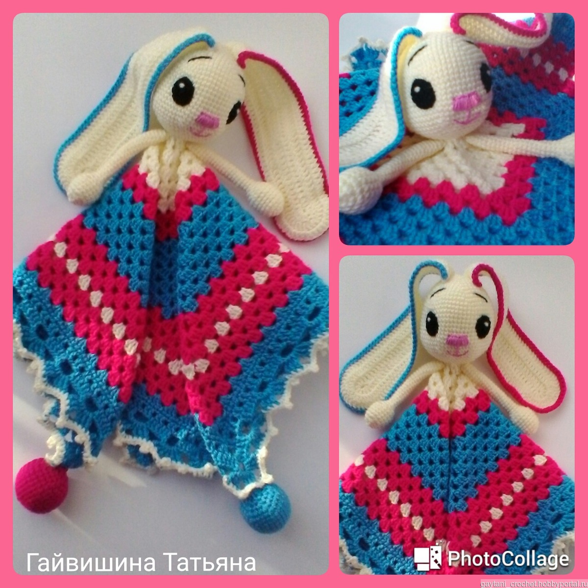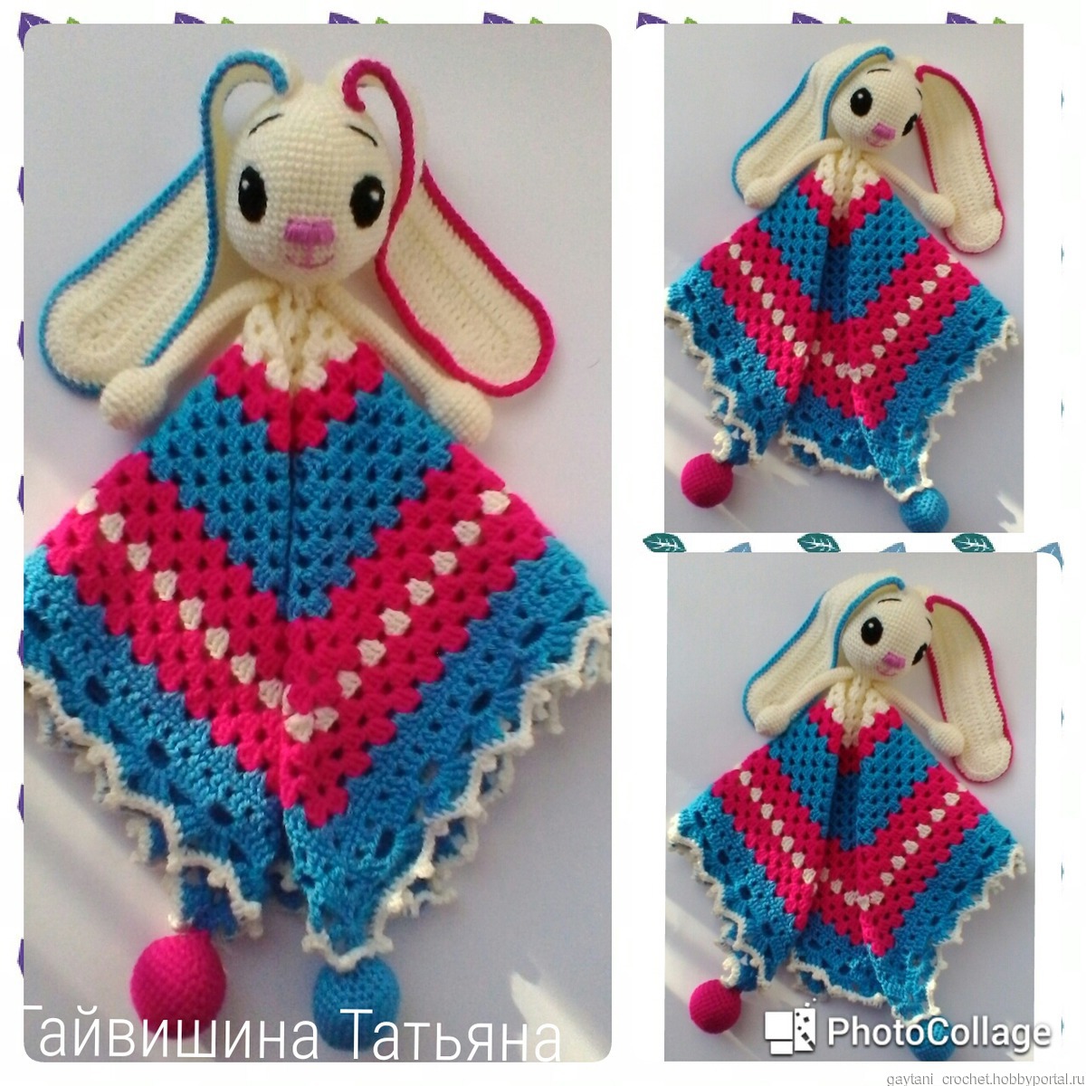 Размер салфетки 43х43 см, диаметр головы зайца 22 см
