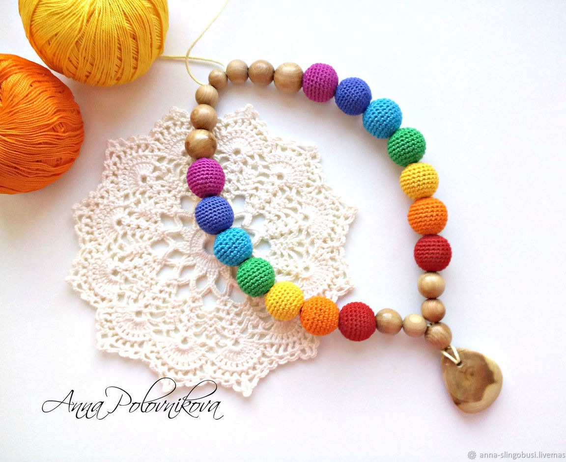 Можжевеловые и силиконовые бусинки различных форм способствуют развитию мелкой моторики малыша и нежно почешут дёсенки. Бусины обвязаны 100% хлопком. Клипса немецкого производства с безопасным для малыша покрытием (цвета клипс в наличии: голубой, розовый, фиолетовый, натуральный). Отличная первая игрушка и подарок на рождение, смотрины или любой другой праздник))