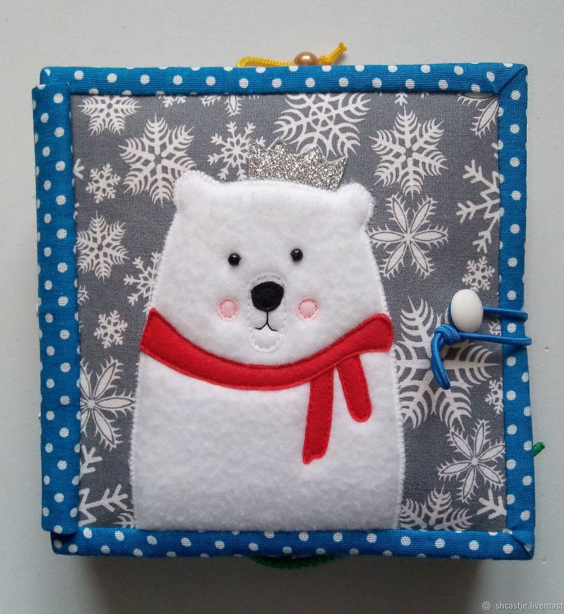 На обложке-белый мишка в шарфе из мягкого флиса.