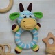 Добрая, улыбчивая коровка связалась из 100% хлопковой пряжи, внутри находится погремушка и гипоаллергенный наполнитель, который хорошо держит форму и не впитывает воду, поэтому игрушка довольно быстро сохнет после стирки. Основа игрушки - обвязанное деревянное кольцо, лапки - обвязанные деревянные бусины. Глазки пластиковые на безопасном креплении, изнутри проклеены клеем для еще большей надежности. Все части игрушки очень хорошо сшиты между собой.