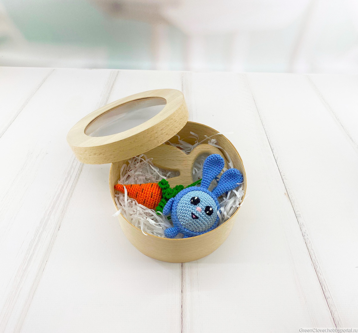 Материалы: деревянная фигурка (дуб, бук), пластиковый корпус (гремелка), пряжа - 100% хлопок.