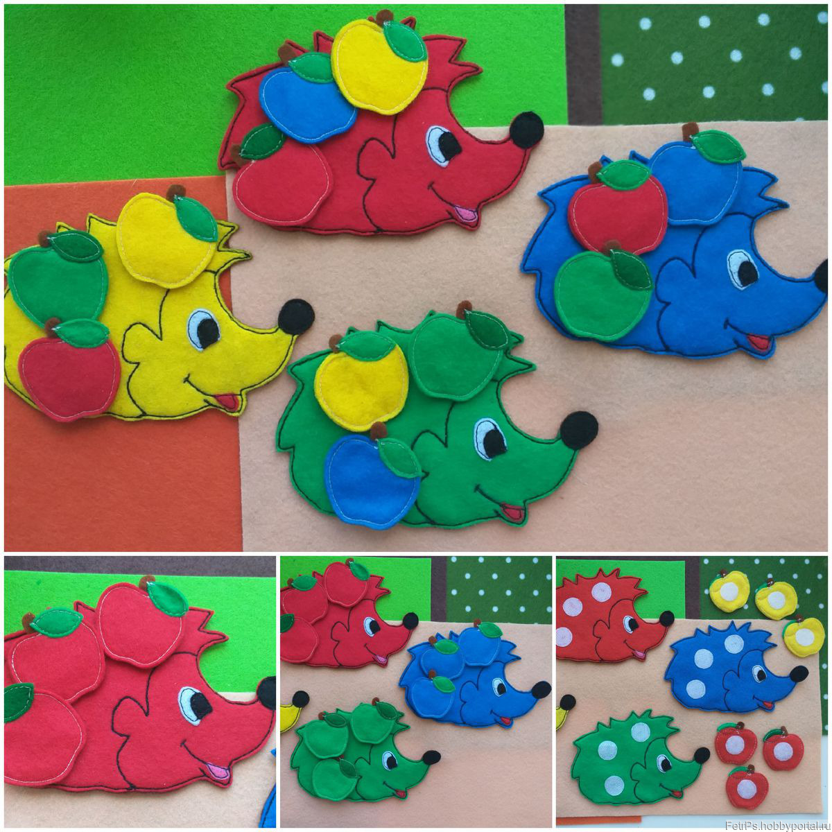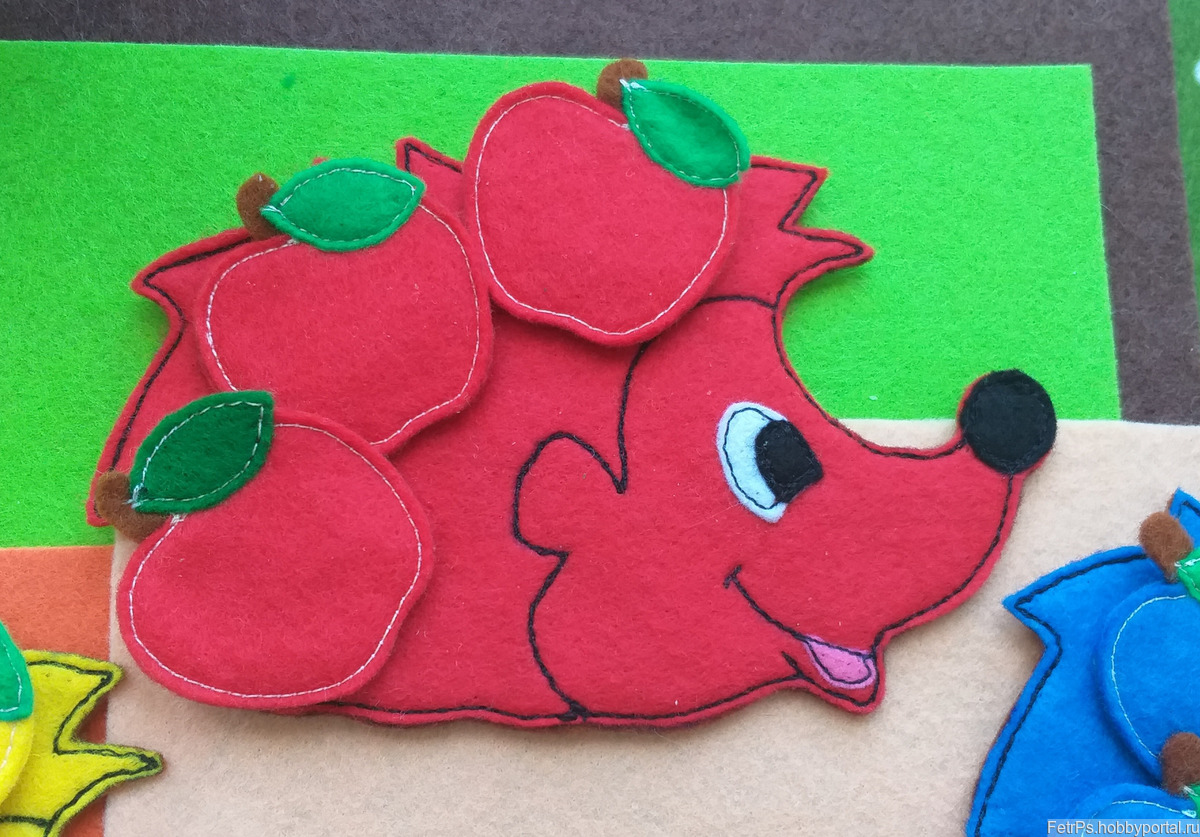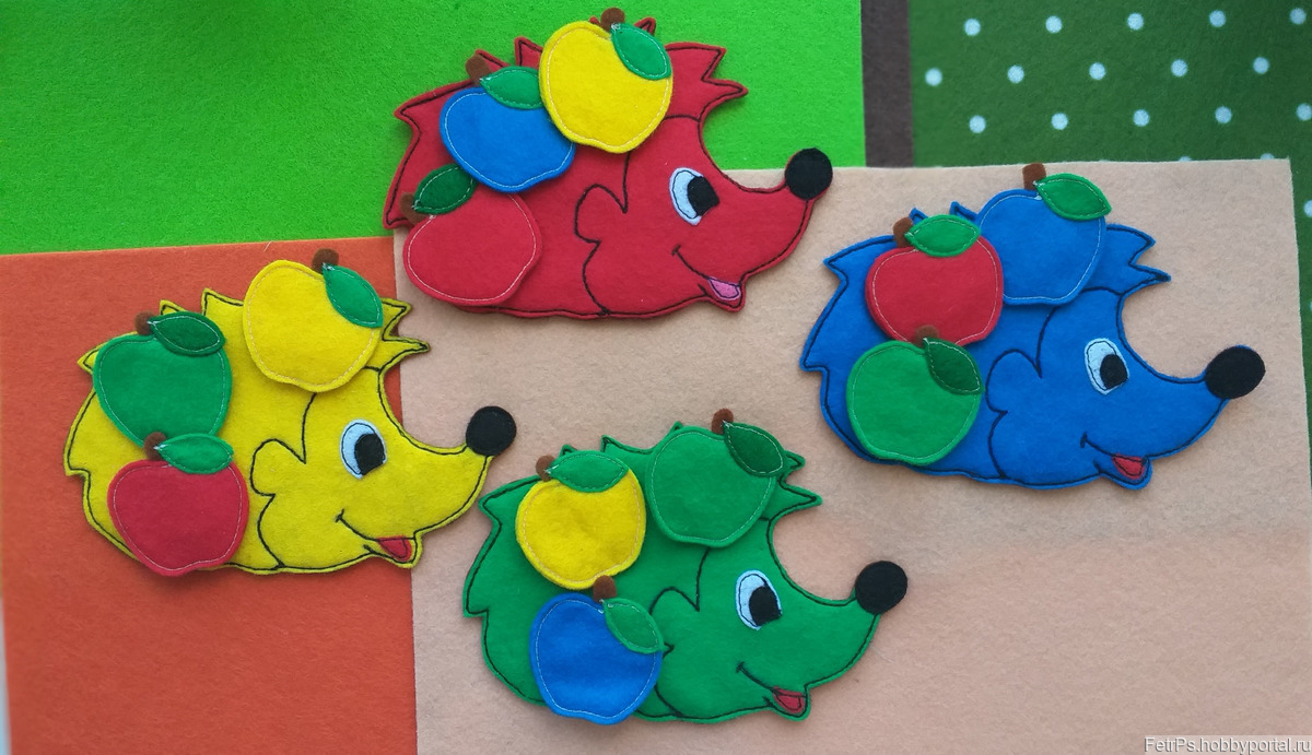 Развивающие игры из фетра, Ежики из фетра, Ежики с яблоками