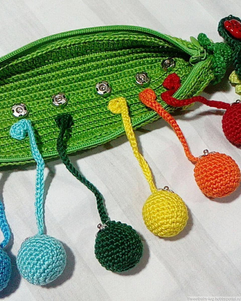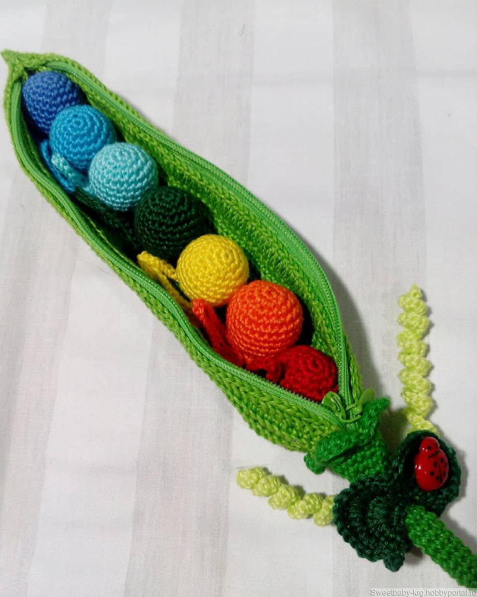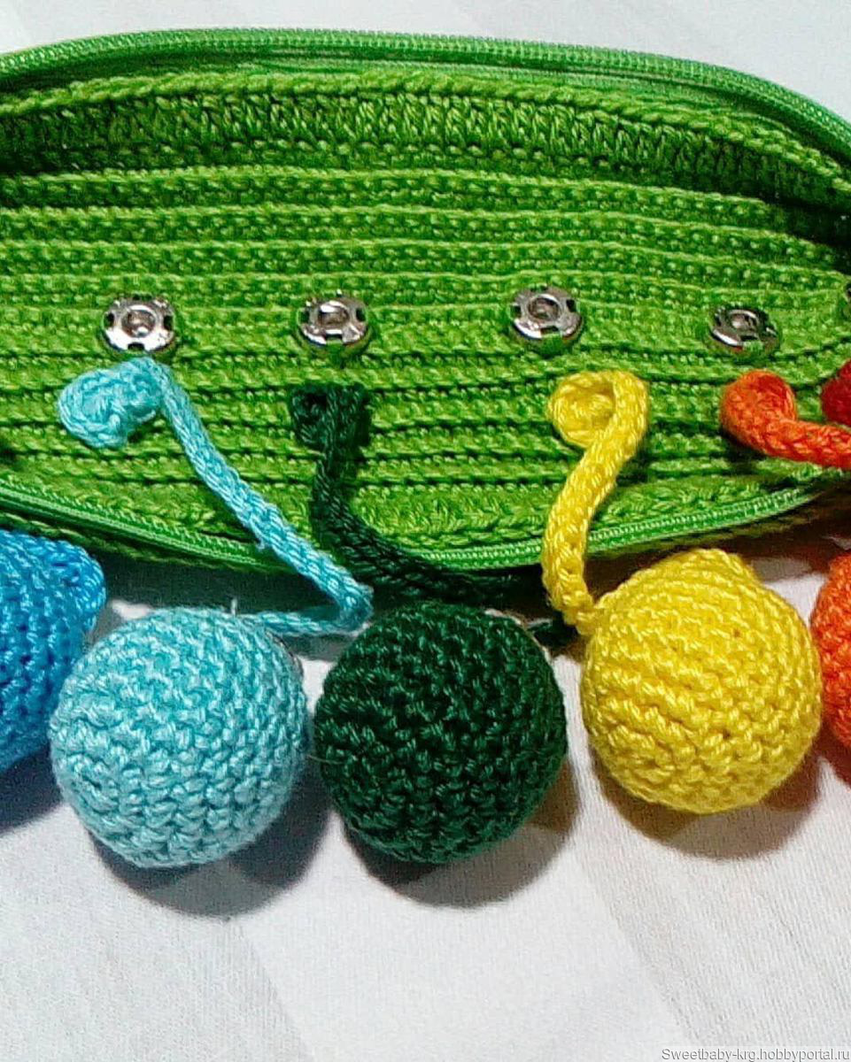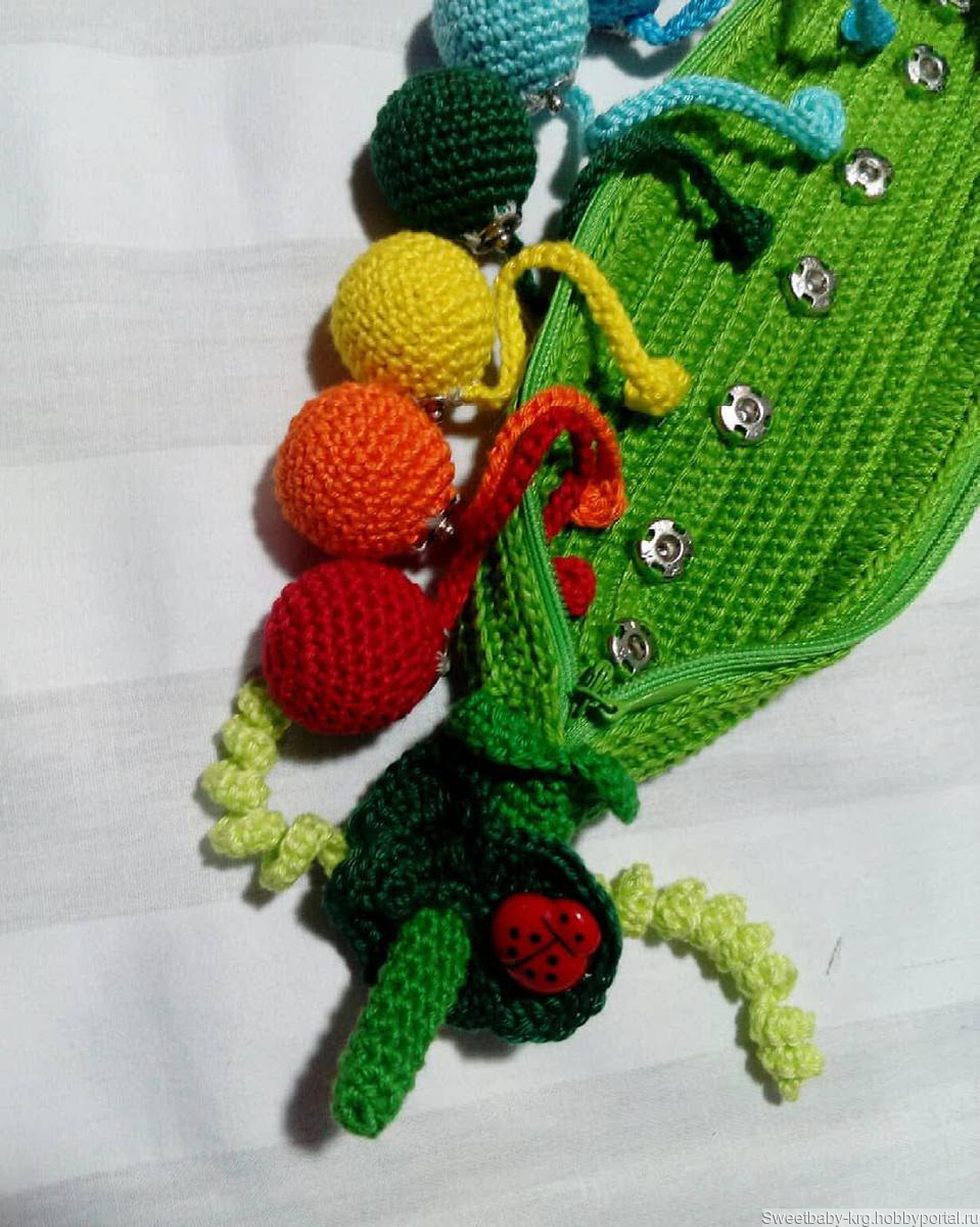 Развивающая игрушка "горох". Способствует развитию мелкой моторики ребёнка, поможет изучить основные базовые цвета. Вязаная игрушка отлично подходит для тактильного (сенсорного) развития, а можжевеловые бусины придают ей неповторимый аромат.