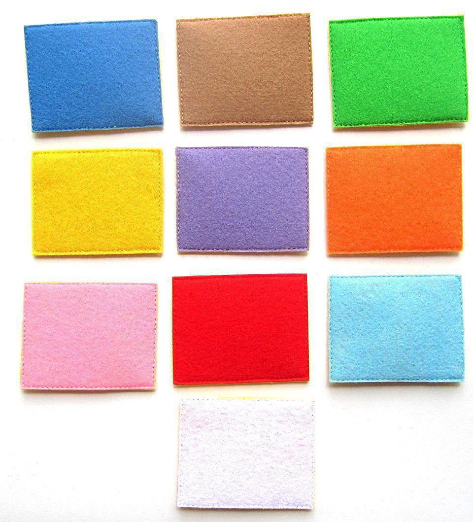 Папки сшита из плотного фетра толщиной 2 мм в два слоя, так что общая толщина - 4 мм. В свернутом виде ее размер равен формату А4, а в развернутом - А3. В набор входят 20 карточек из фетра с заданиями (10 карточек определяют цвет и 10 - с геометрическими фигурами) и 100 фишек из декоративной пенки (10 геометрических фигур по 10 цветов каждая).