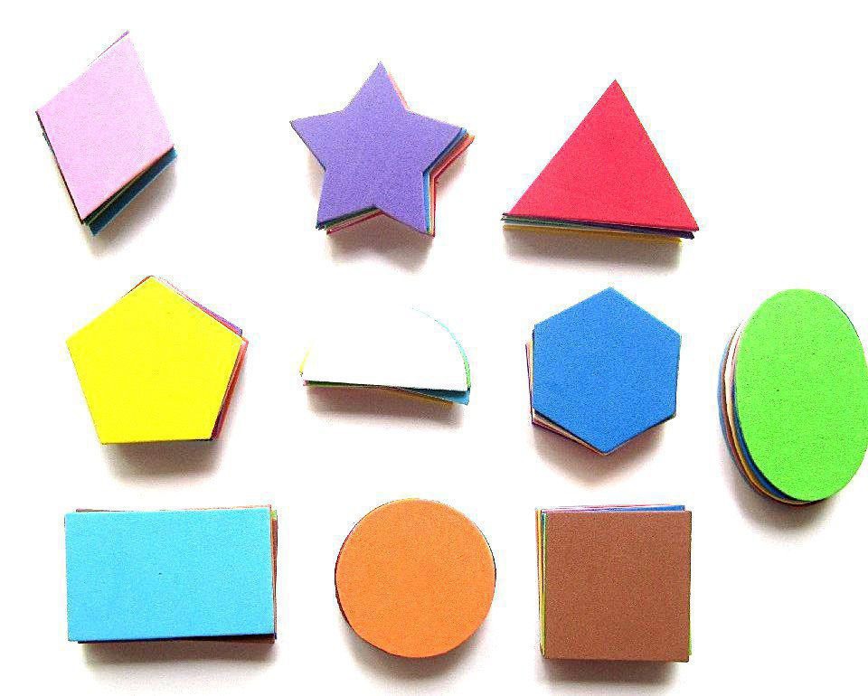 Фигуры - квадрат, прямоугольник, круг, овал, звездочка, полукруг, треугольник, пятиугольник, шестиугольник, ромб.