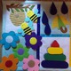 Яркое красочное панно. Состоит из 8 секций с развивающими заданиями. 28 съемных элементов. Все задания на застежку липучку